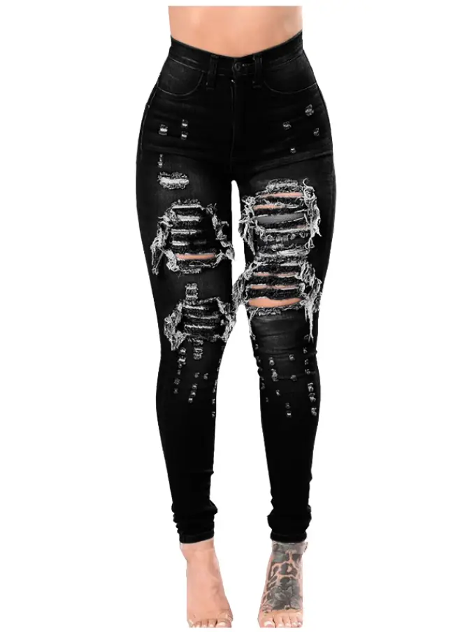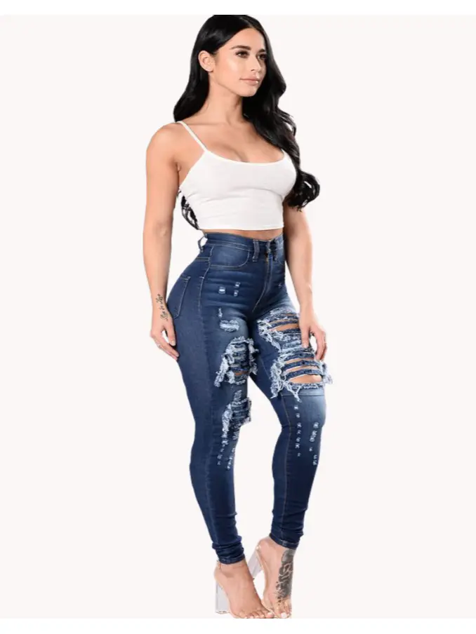 High Waist Stretch Skinny Slim Fit Pencil Pants Popular Casual Ripped Jeans Destroyed Denim Trousers for Women