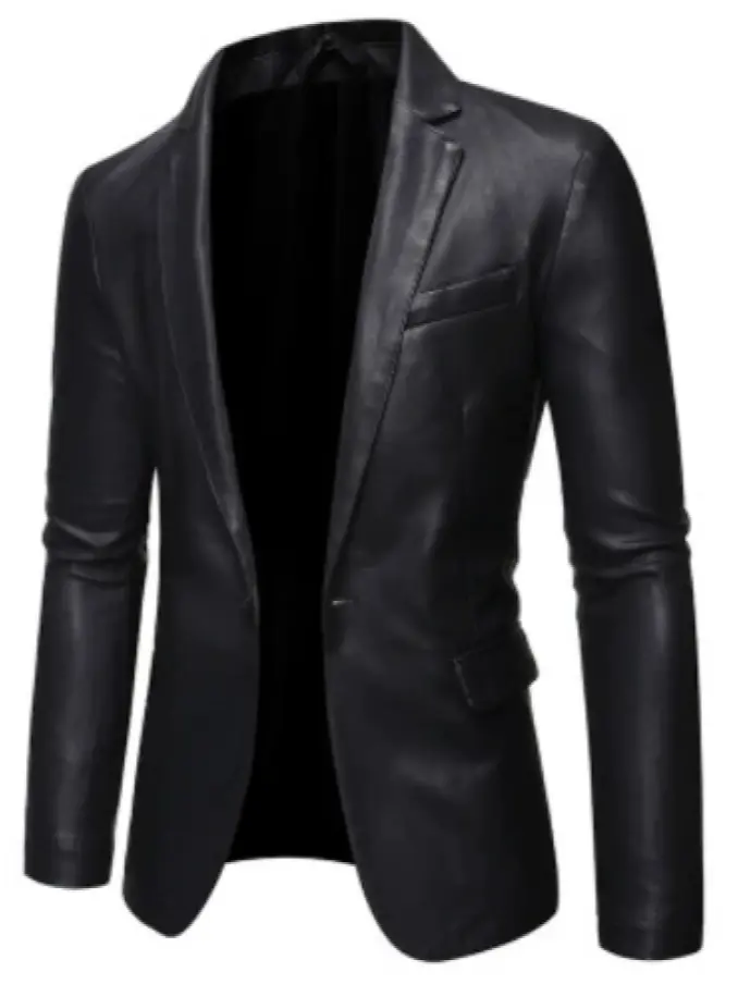 Men's V-Neck Slim Fit Blazer Jacket | PU Leather Business Coat