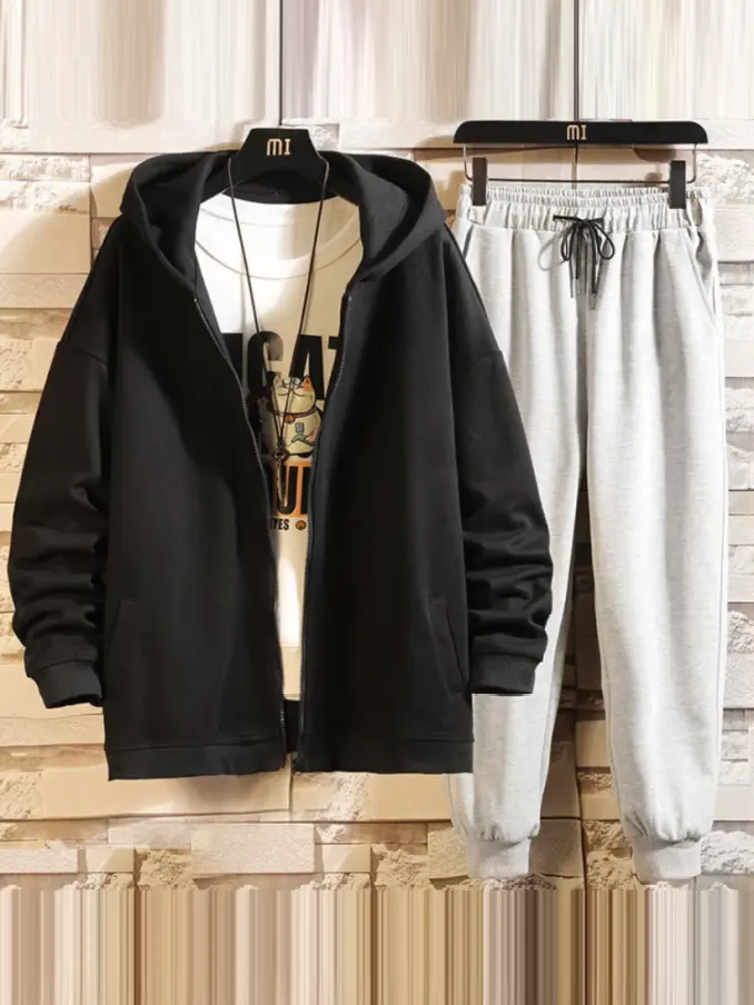 Autumn Men Sports Hoodie Sweatshirt Sets Zipper Casual Jogging Pants Suits