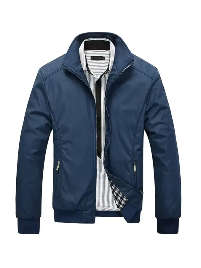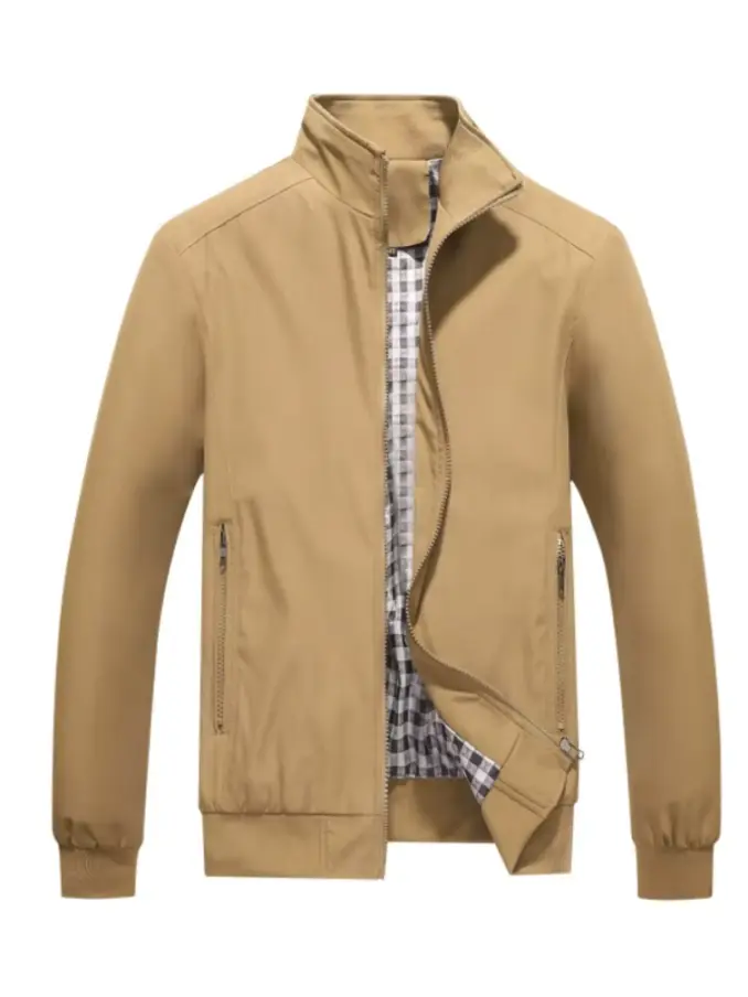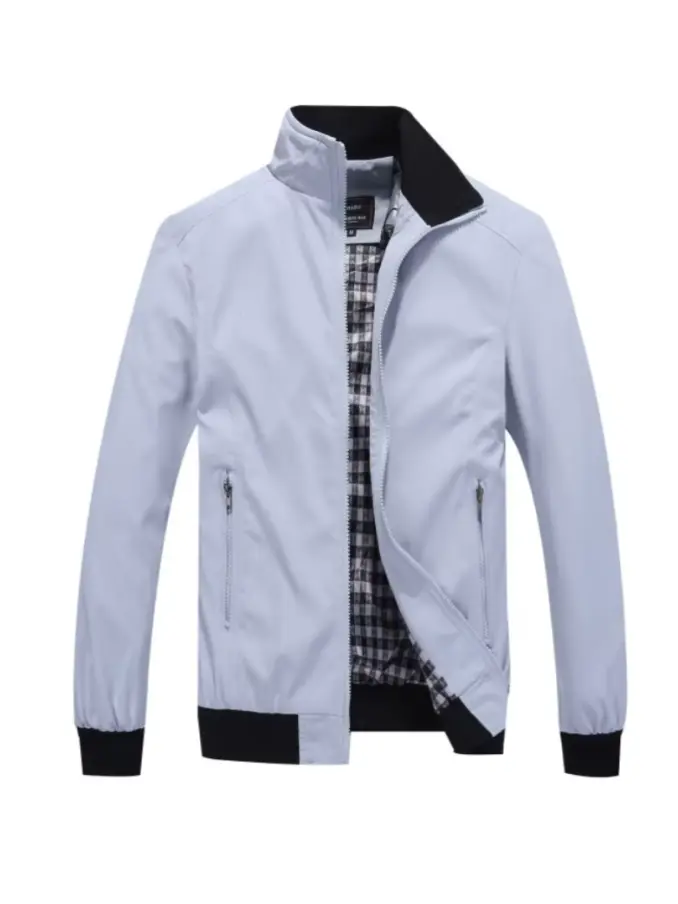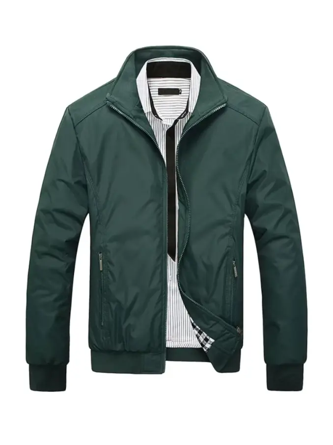 Autumn Thin Casual Men's Jacket - Solid Color Stand Collar Outerwear Coat Office Wear Casual Style