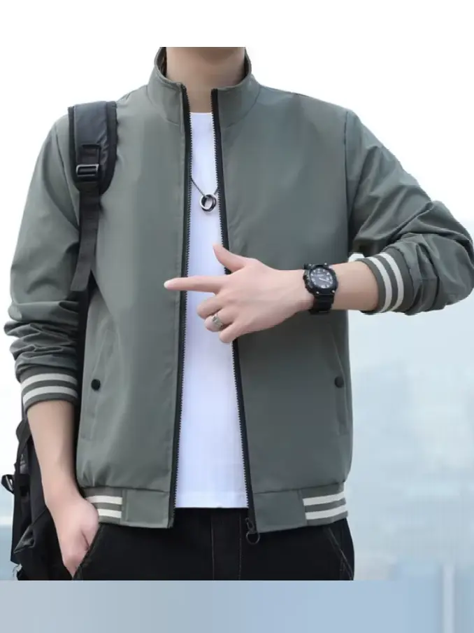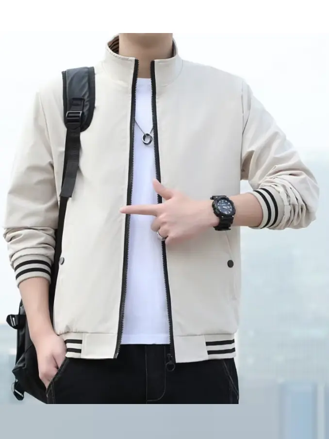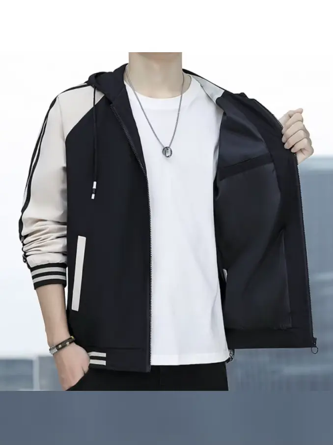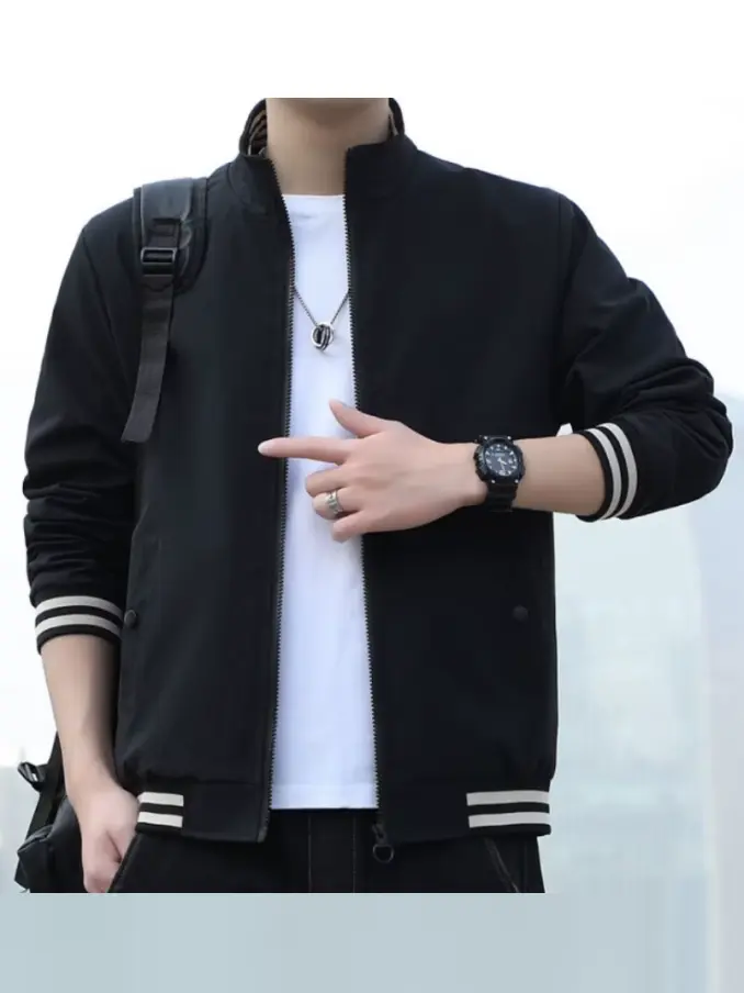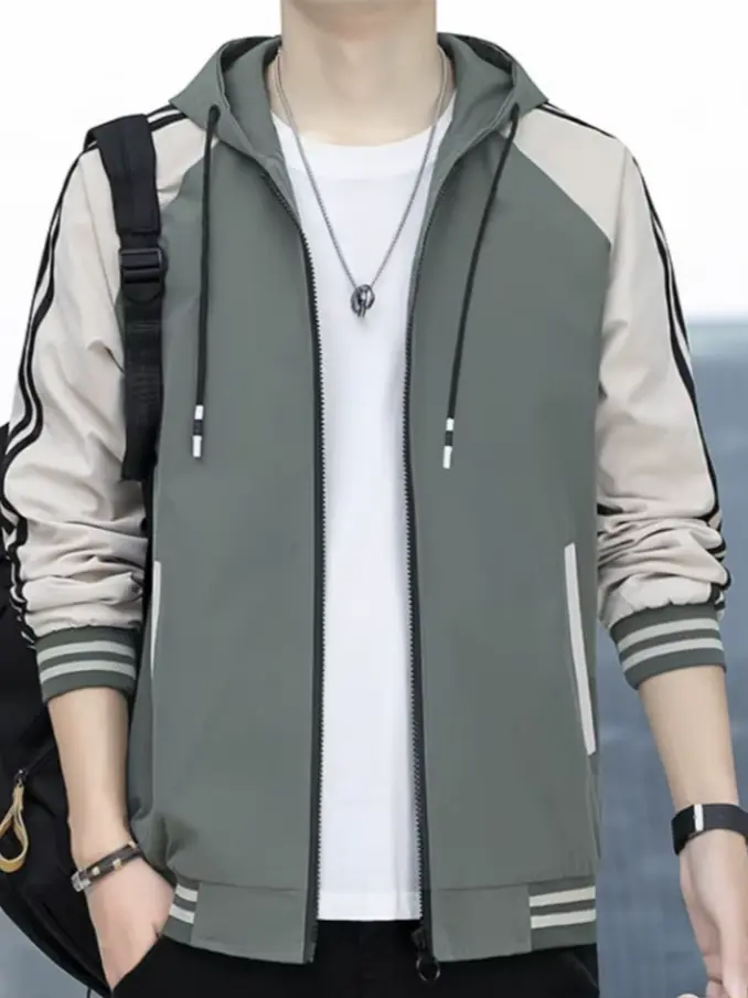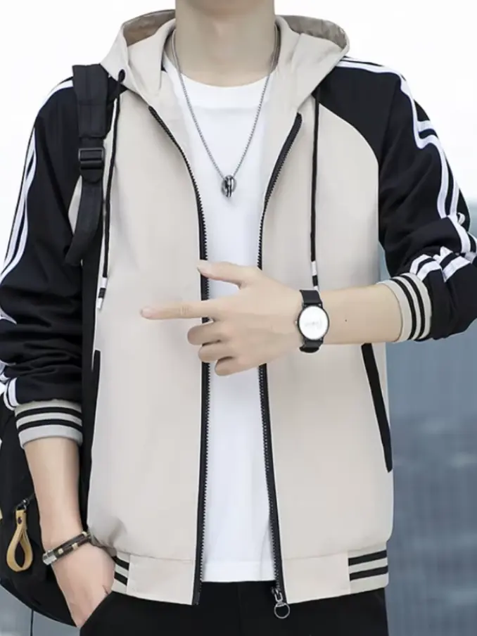 Men's Striped Patchwork Bomber Jacket - Slim Fit Streetwear Coat Standard Collar, Fashionable & Breathable for Casual Outfits