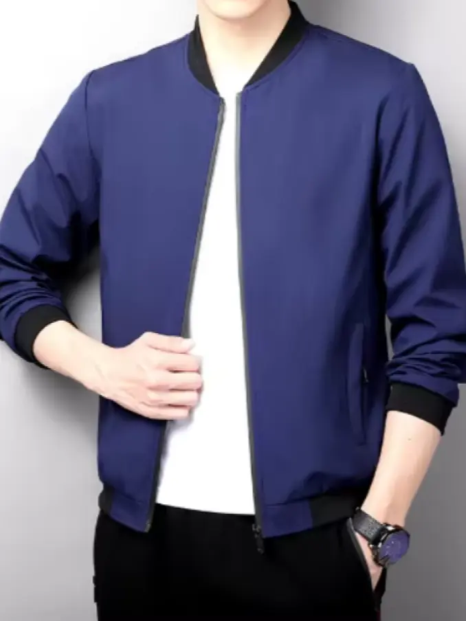 Men Clothing Stand Collar Solid Color Slim Zipper Plus Size Bomber Jackets