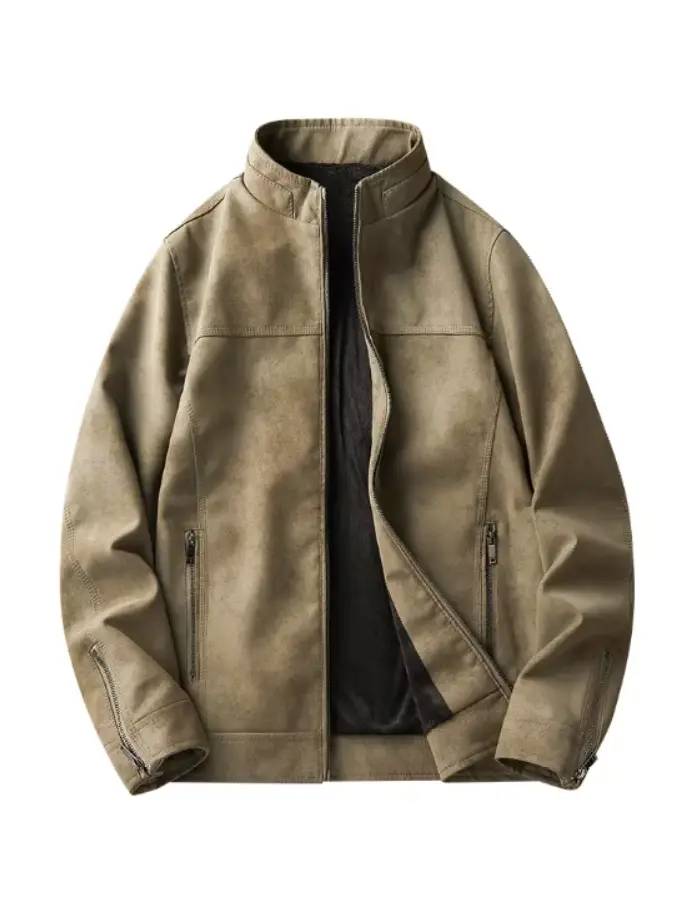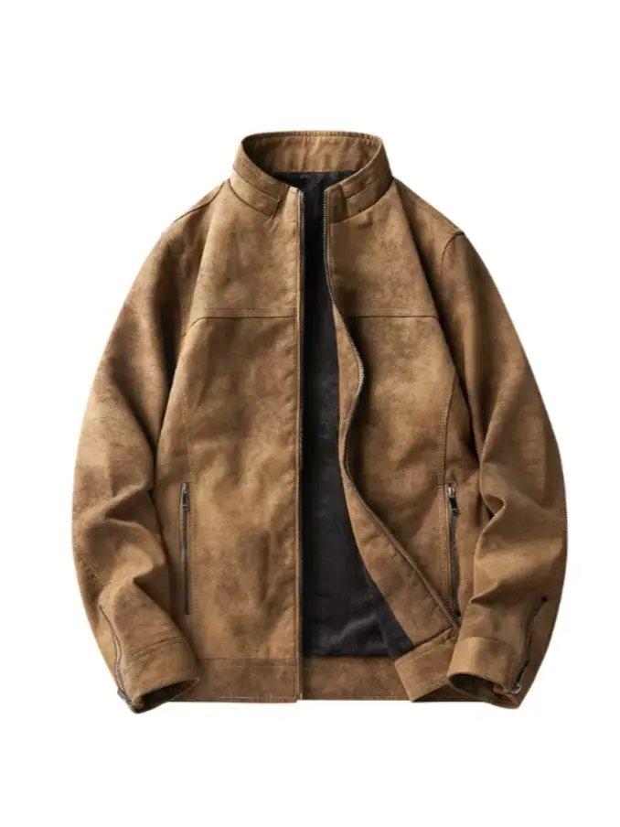 Vintage PU Leather Jacket for Men - Autumn Winter Biker Coat, Motorcycle Jacket with Stand Collar, Casual Outerwear