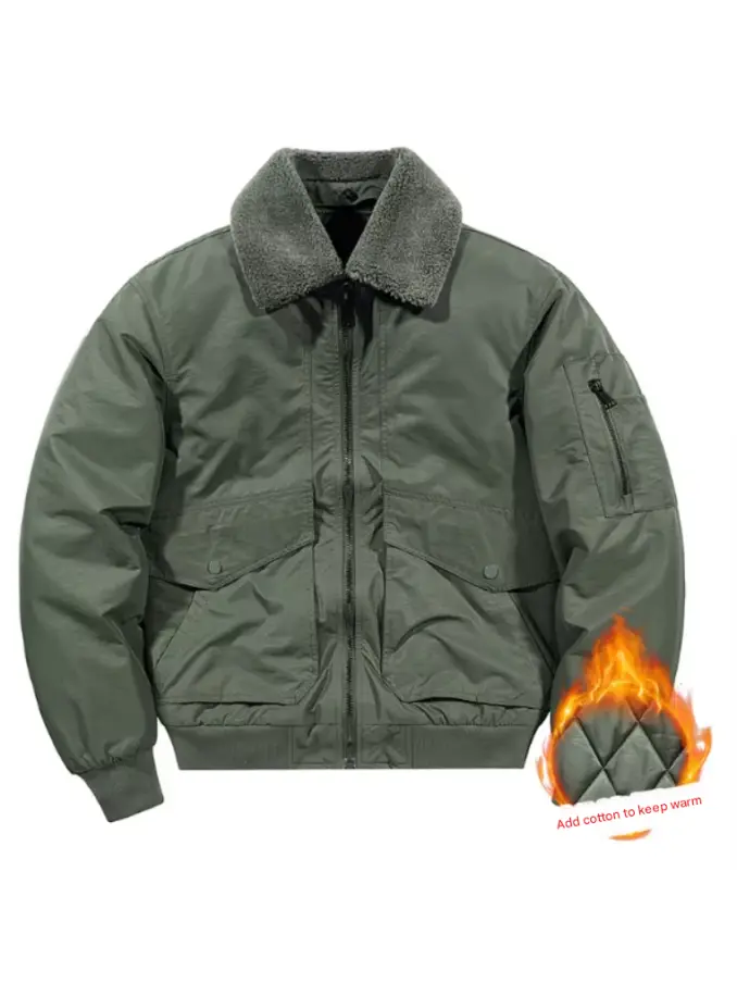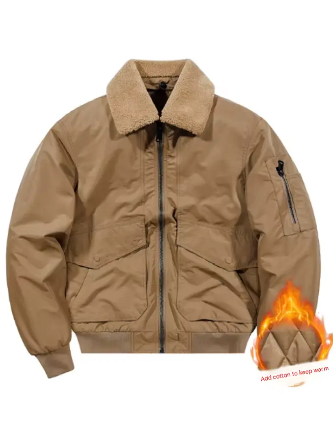 Men's Winter Jacket Autumn Windproof Warm Coat Casual Loose Fit Polyester Plus Size Outerwear with Fur Collar