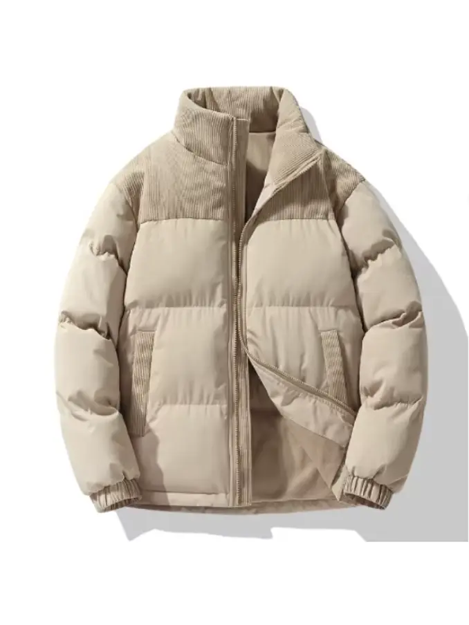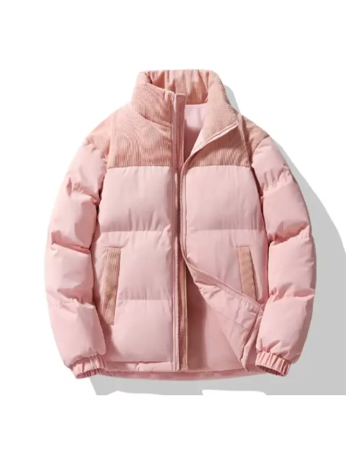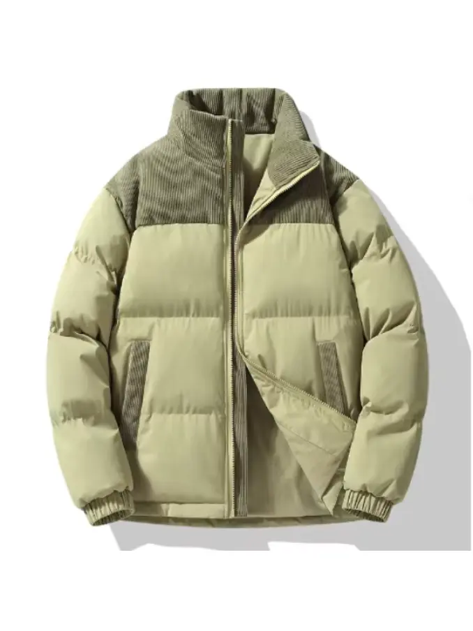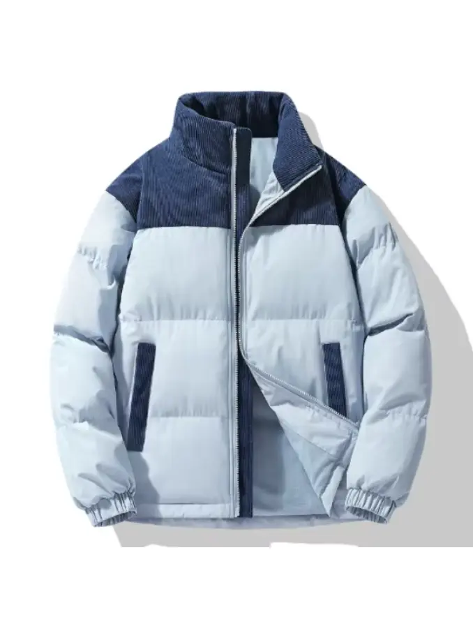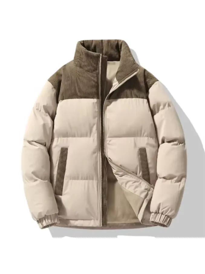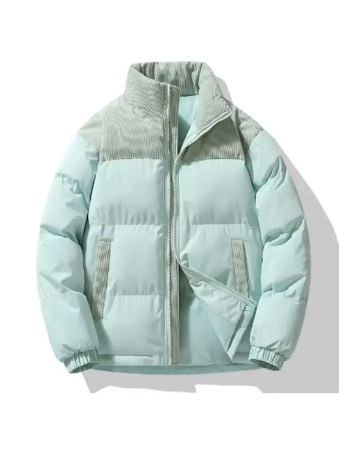 Unisex Streetwear Winter Coat New Fashion Padded Polyester Cotton Stand Collar Oversize Parka Patchwork Design