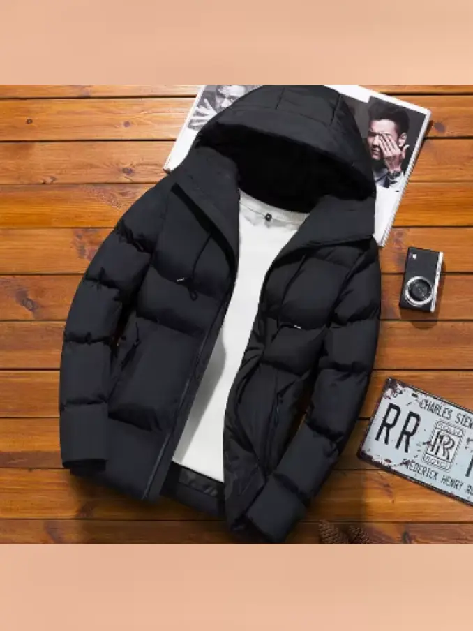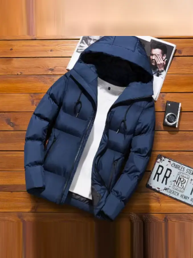 Men Clothing Windbreaker Parkas Solid Color Overcoat Long Sleeve Zipper Hood Jacket Coats