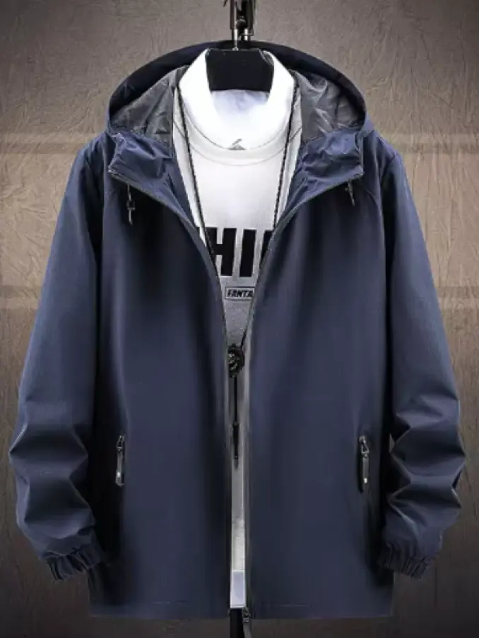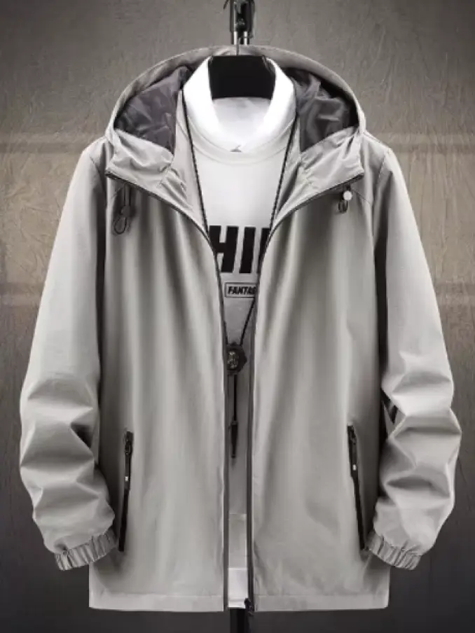 Men Outerwear Slim Fit Zipper Hooded Jacket