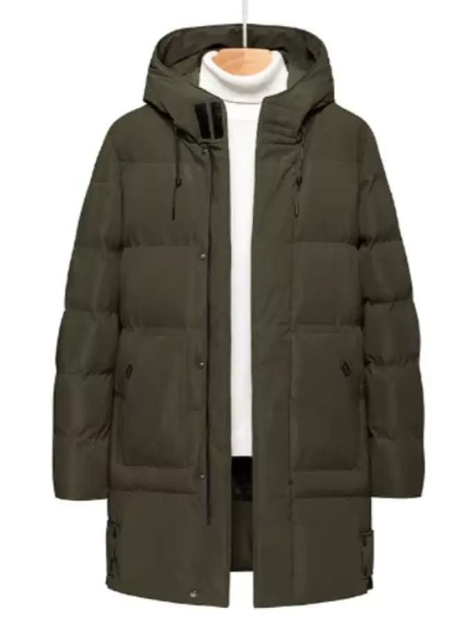Men's Casual Winter Jacket Windproof Hooded Plus Size Coat Long