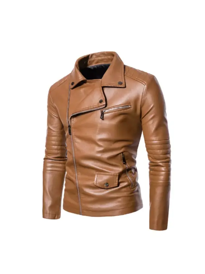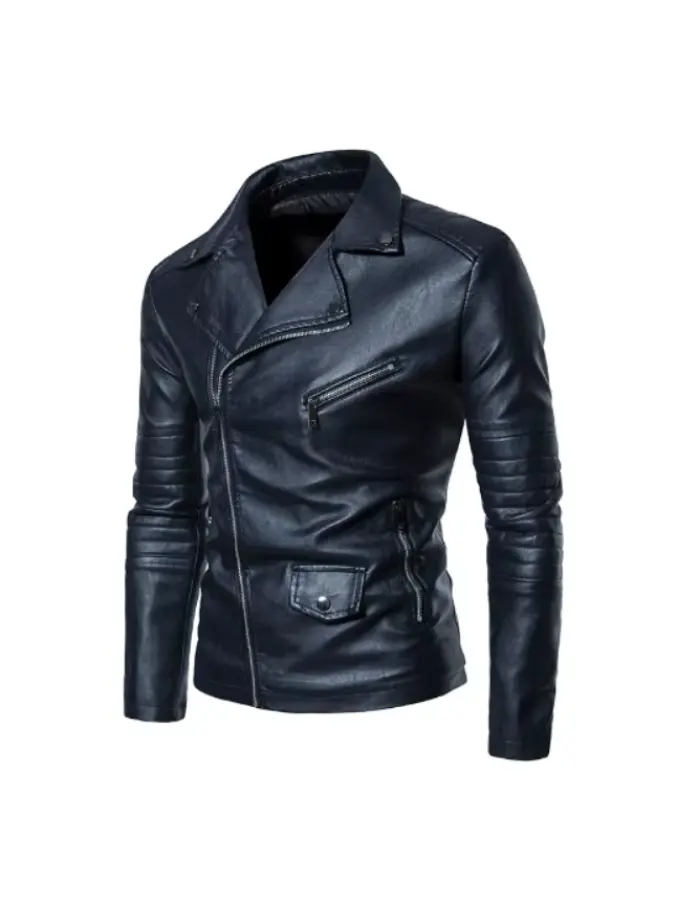 Men's Fashion Motorcycle PU Leather Turn Down Collar Outerwear Jackets