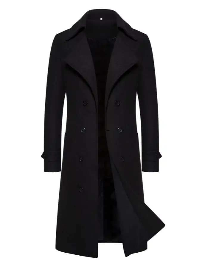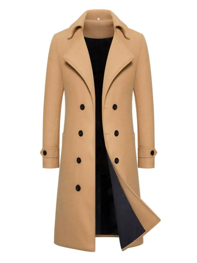Autumn Elegant Men Double Breasted Long Wool Coat Windbreaker Woolen Jackets
