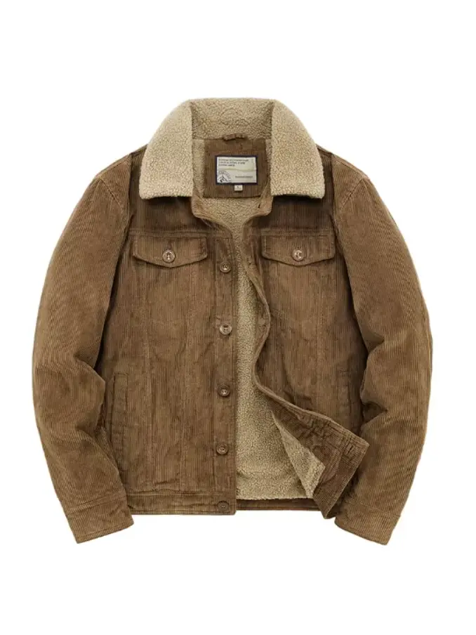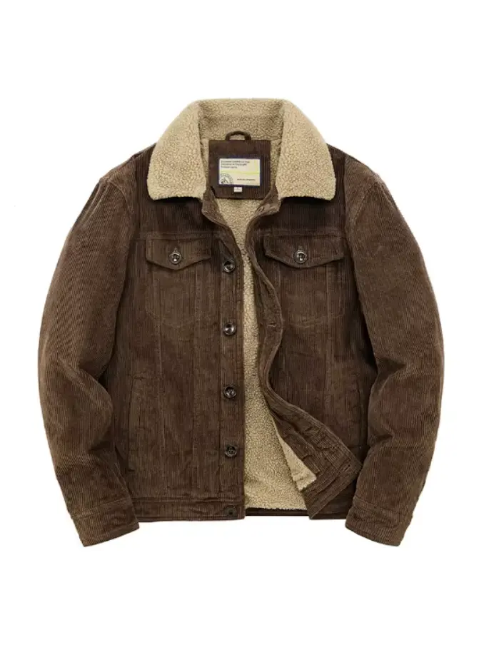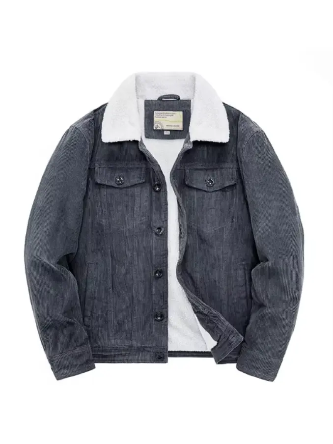 Men Winter Corduroy Jacket Windproof Loose Single Breasted Plush Coat Casual Outerwear