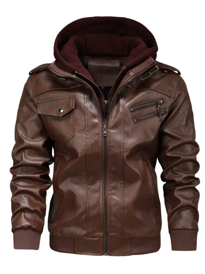 Men Clothing Casual Motorcycle PU Hoodie Jacket