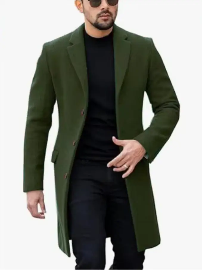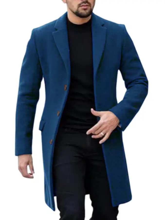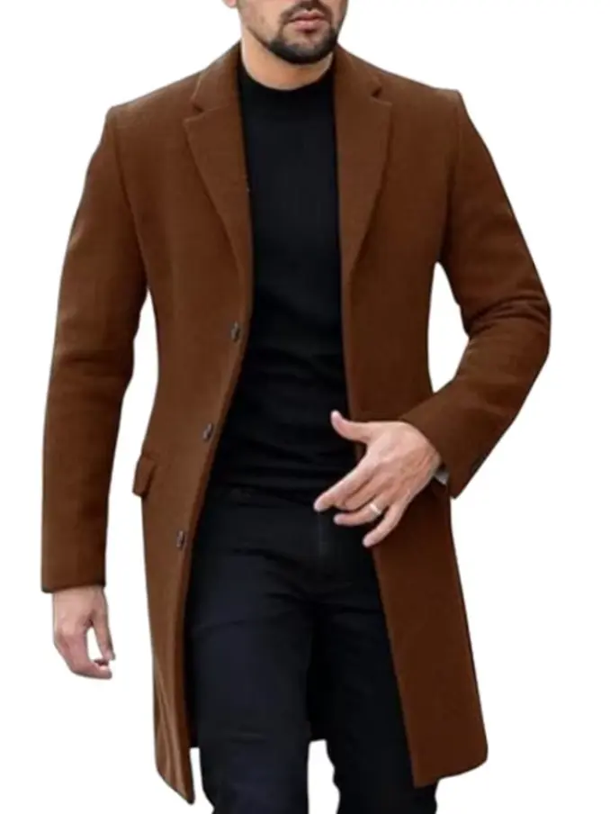 Men's Casual Slim Solid Windbreaker Plus Size Trench Jacket Long Woolen Coats