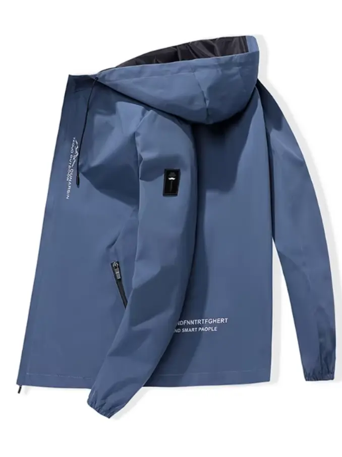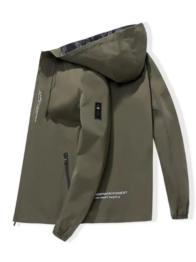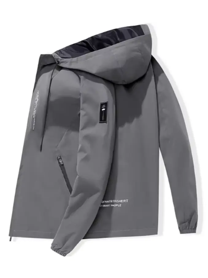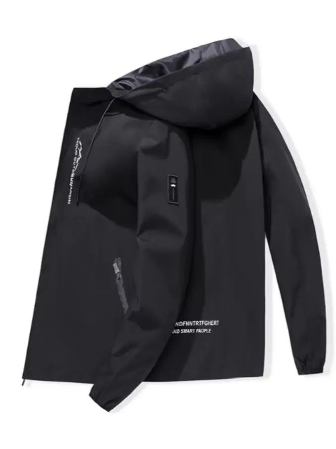 Men Fashion Windbreaker Printing Windproof Zipper Hooded Jacket Coat
