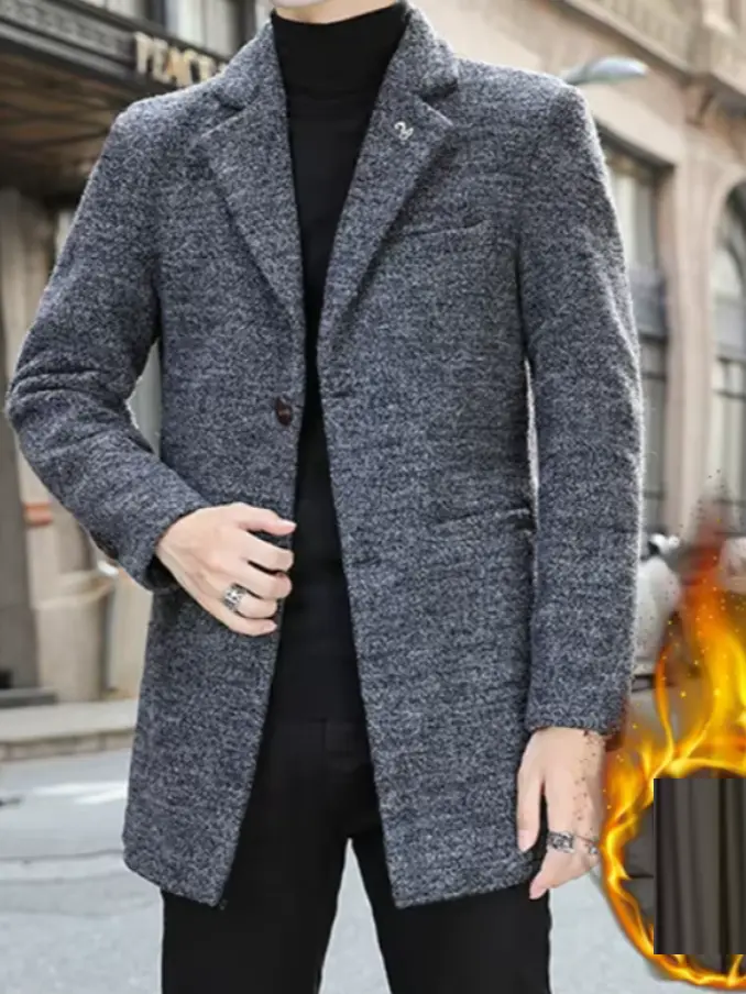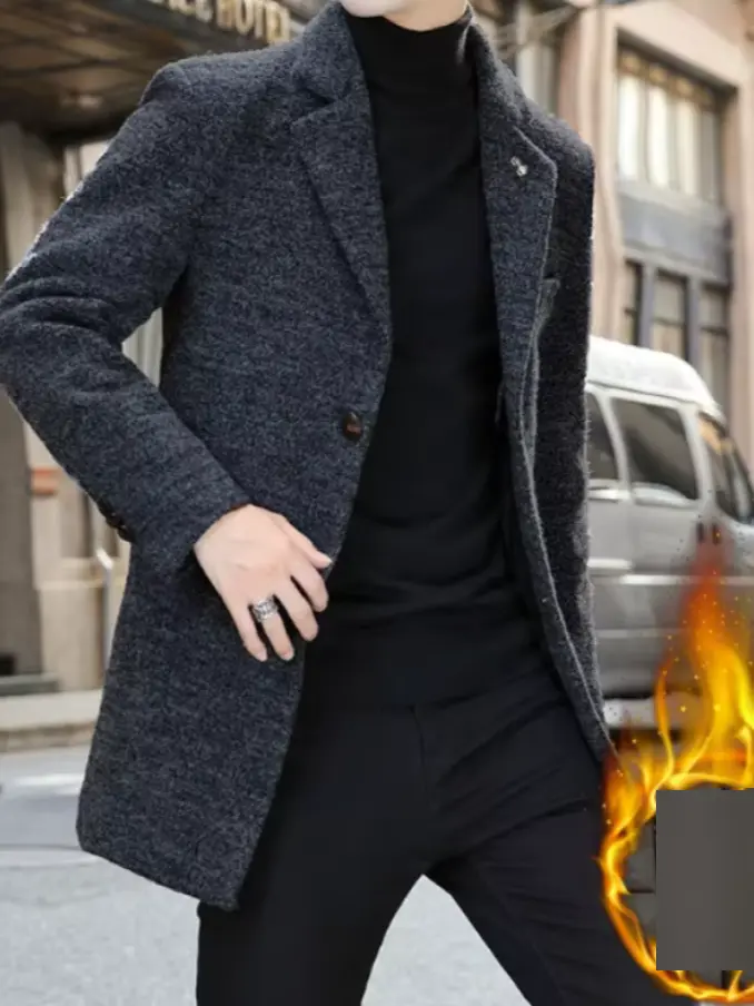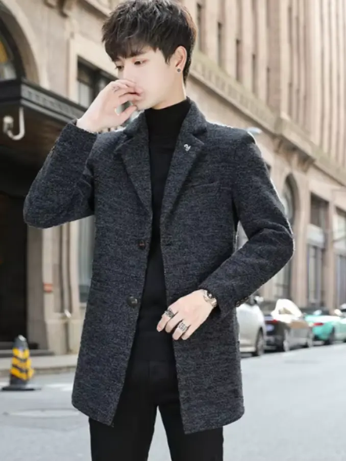 Men Clothes Solid Color Windbreaker Thick Warm Jacket Plus Size Woolen Coat