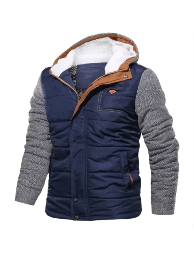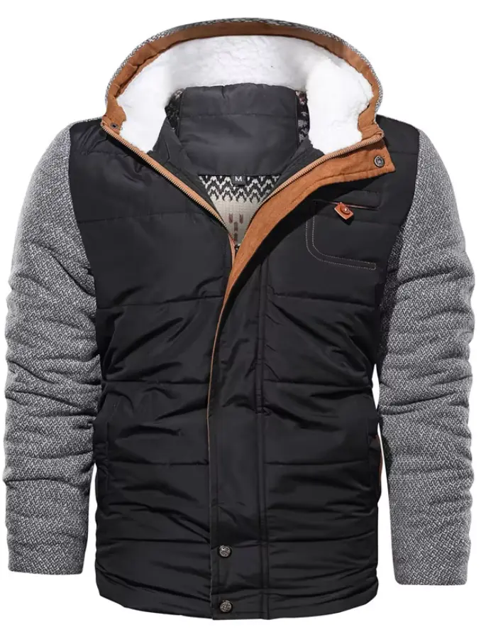Men Winter Fleece Jacket Thick Cotton Hooded Parka