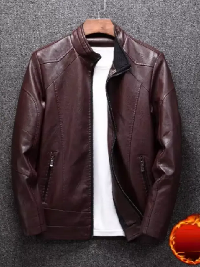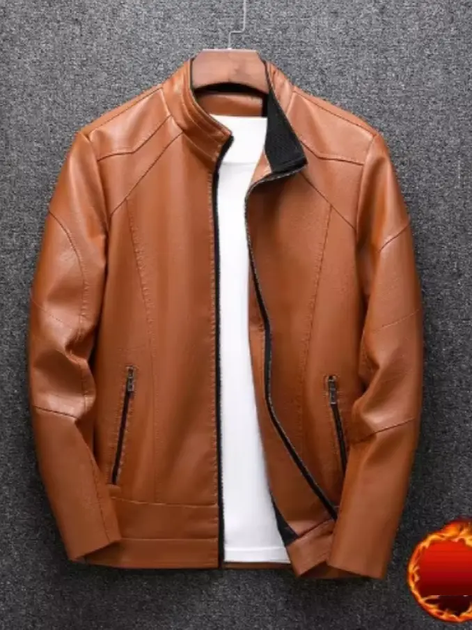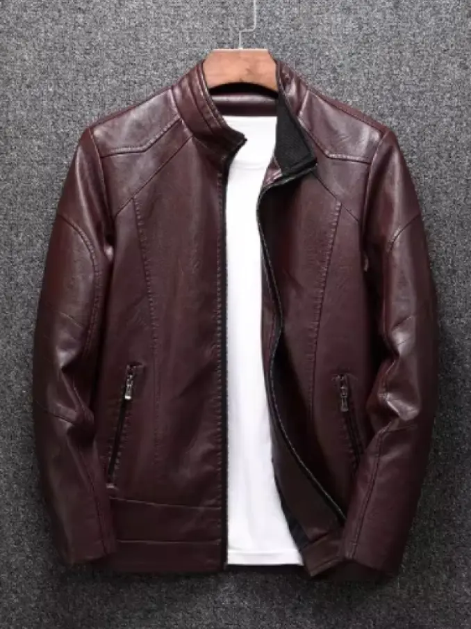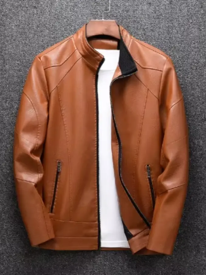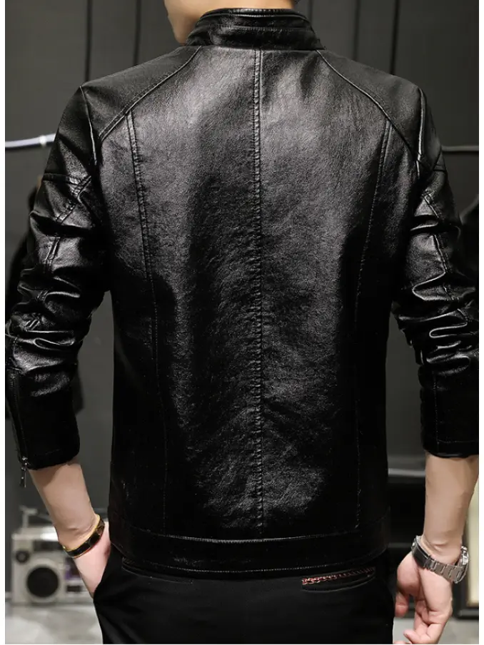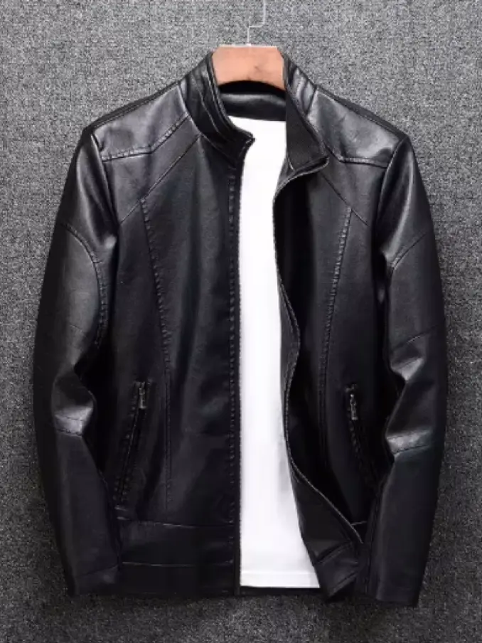 Men Casual Slim Fit Stand Collar Clothing Business PU Leather Jacket
