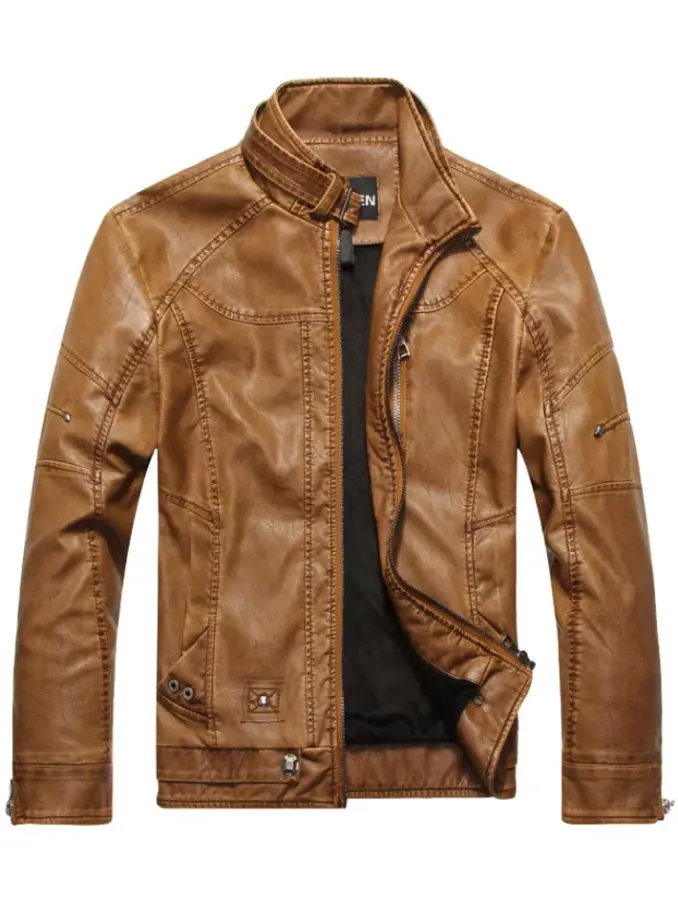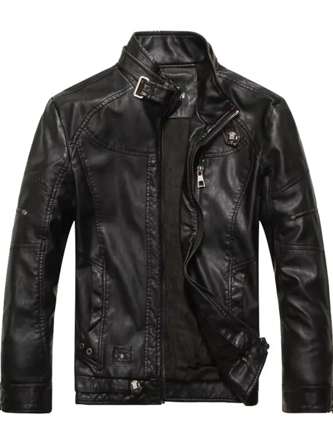 Men's Fleece Thick Warm Motorcycle Plus Size Jacket Pu Leather Coats