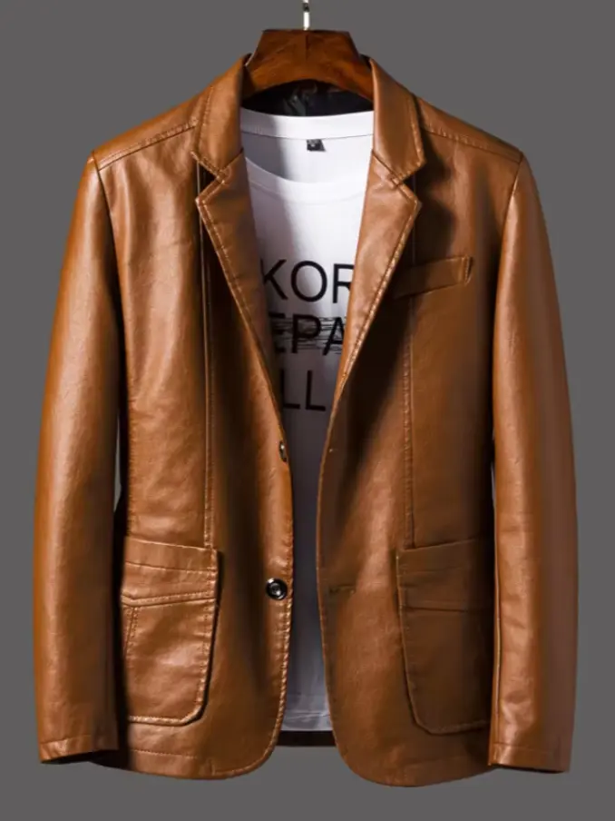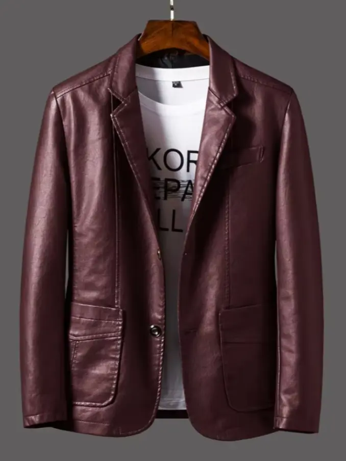 Mens Casual PU Leather Slim Jacket