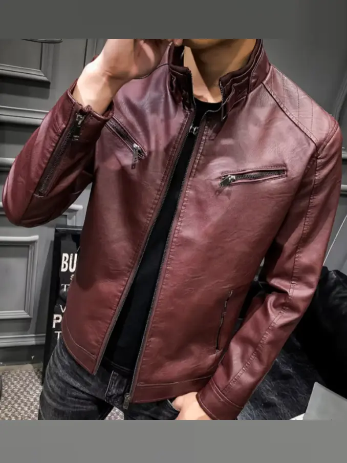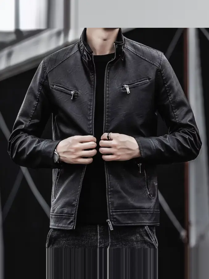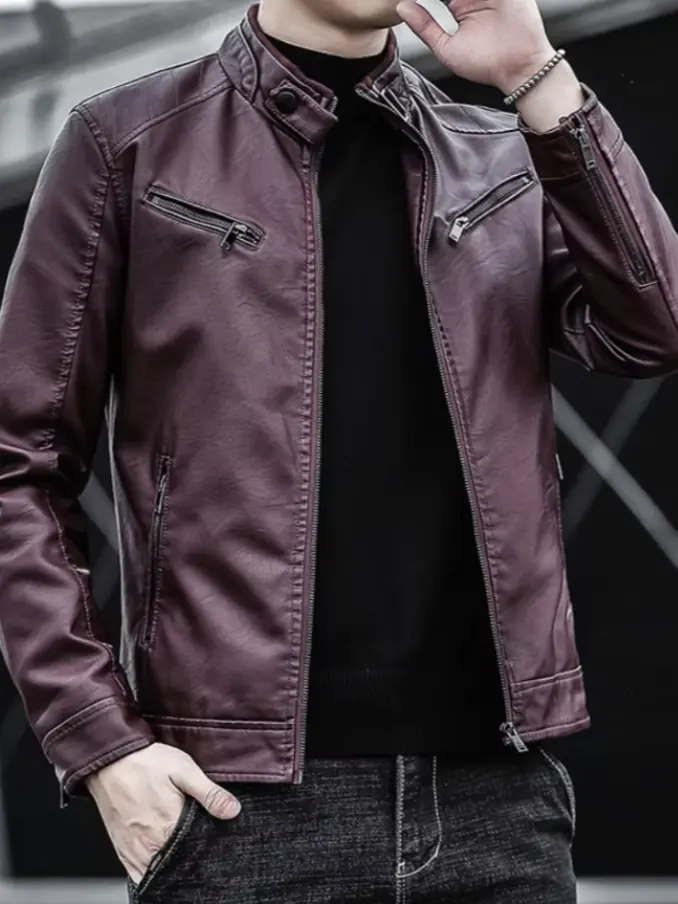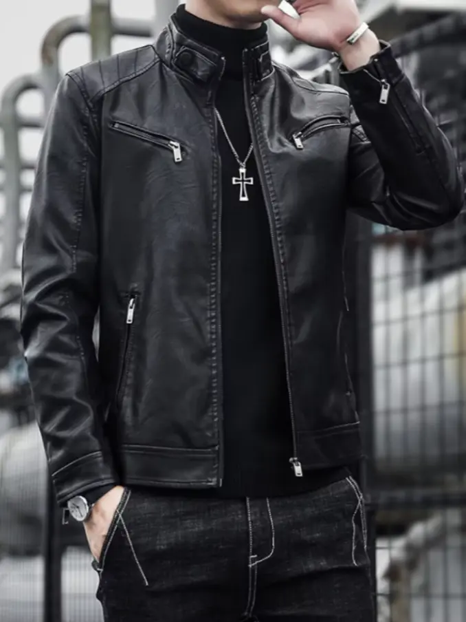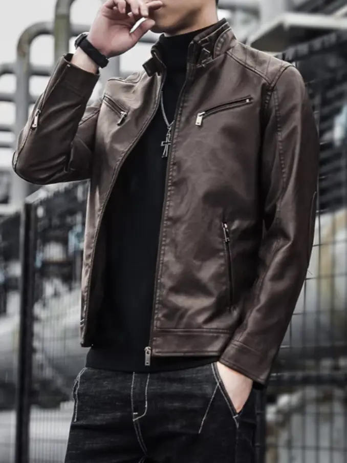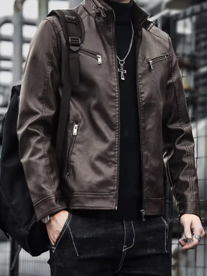 Men Casual Pu Leather Outdoor Jacket