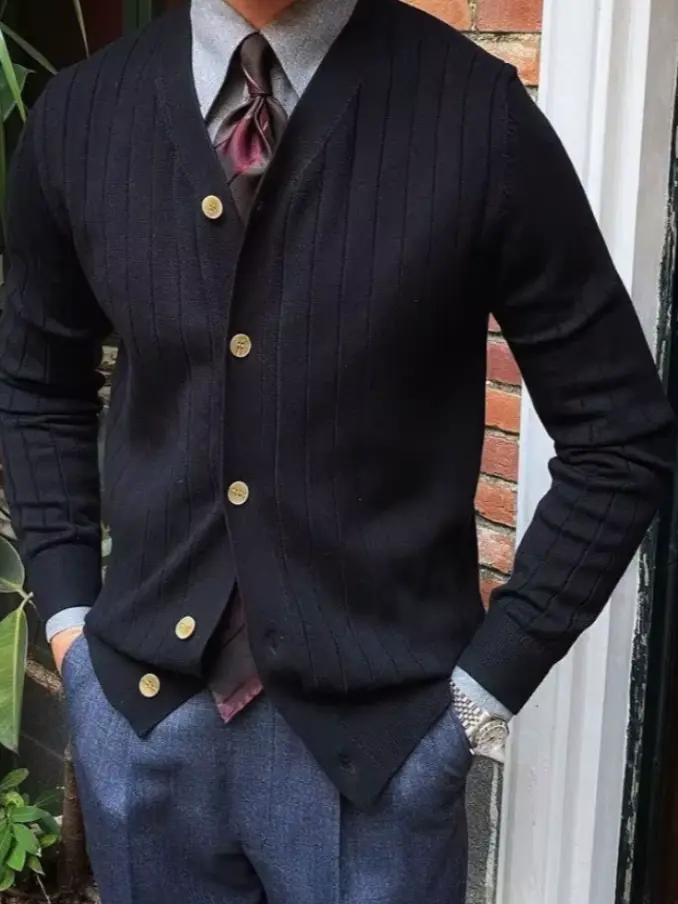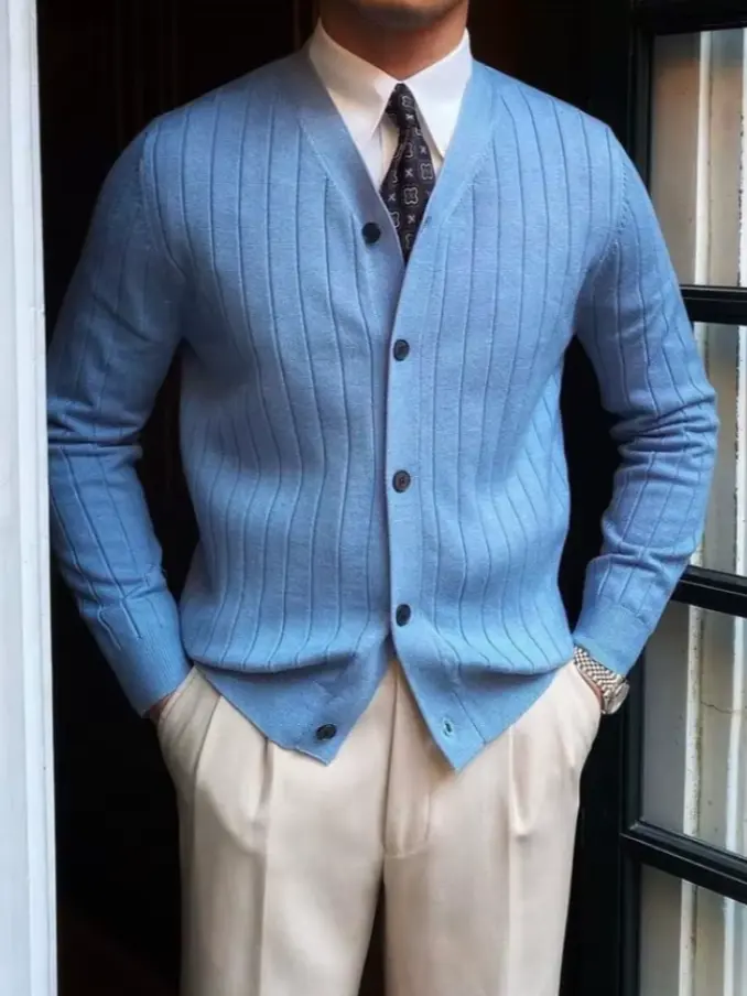 Men Slim Fit V Neck Cardigan Sweater