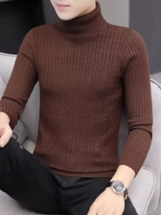 Winter Turtleneck Men Solid Color Knitted Pullovers Fashion Slim Fit Casual Sweaters