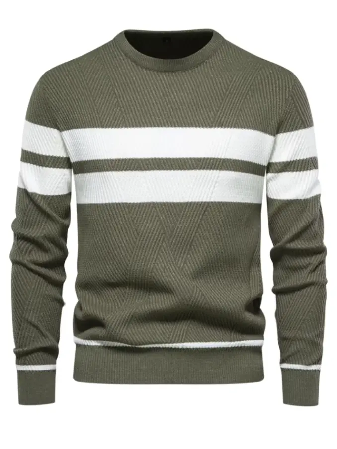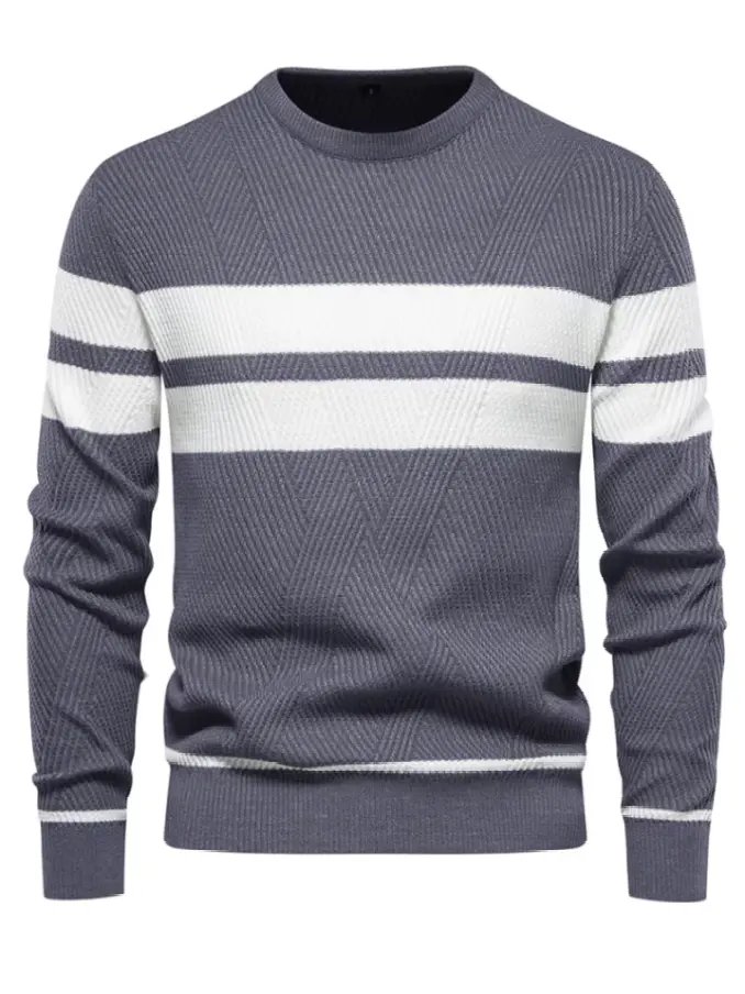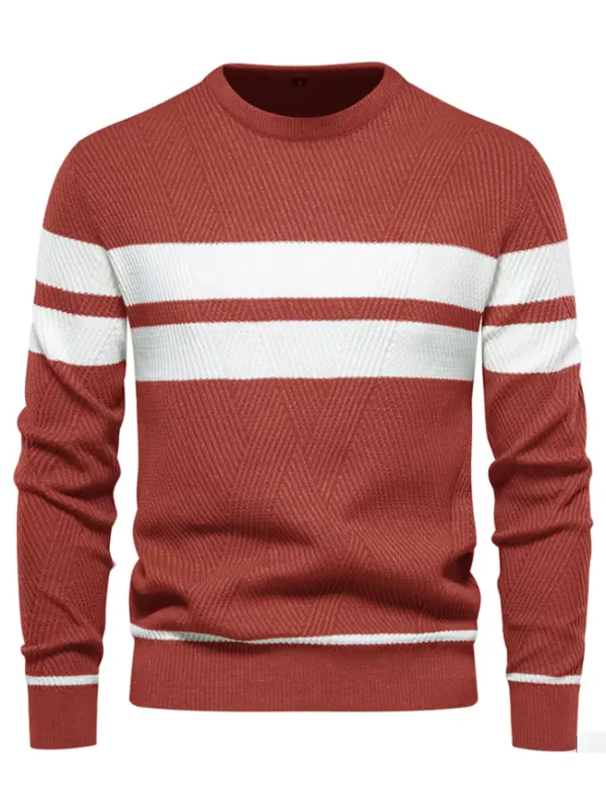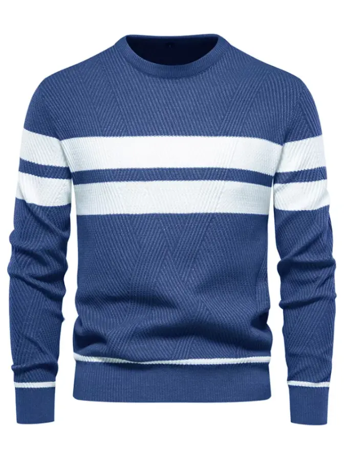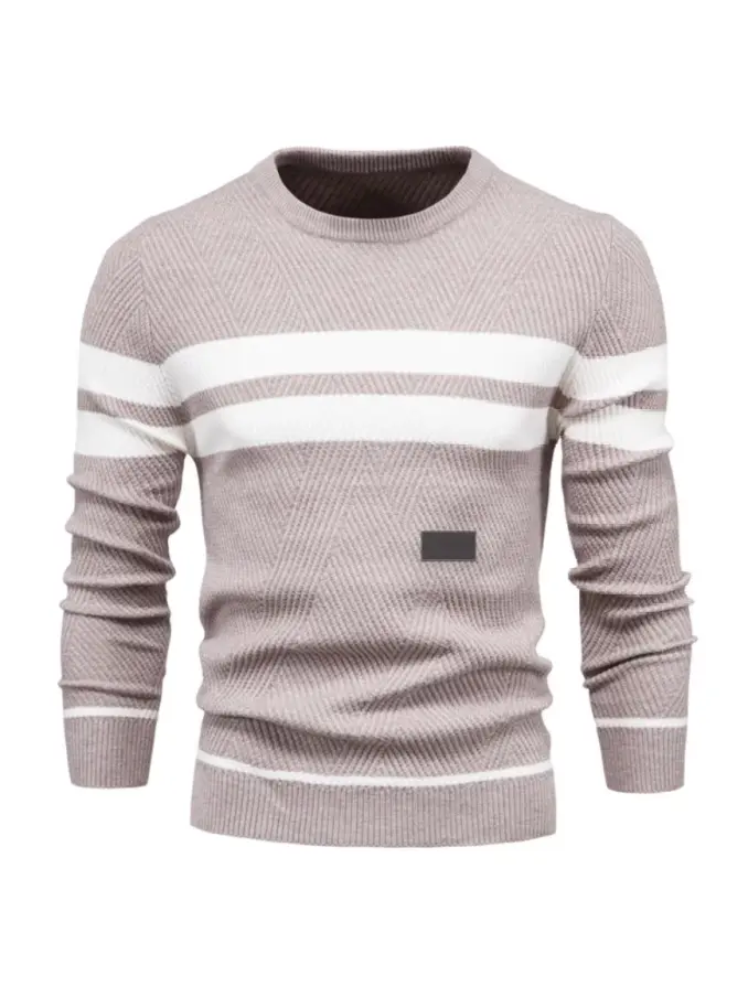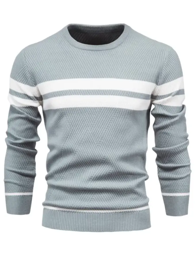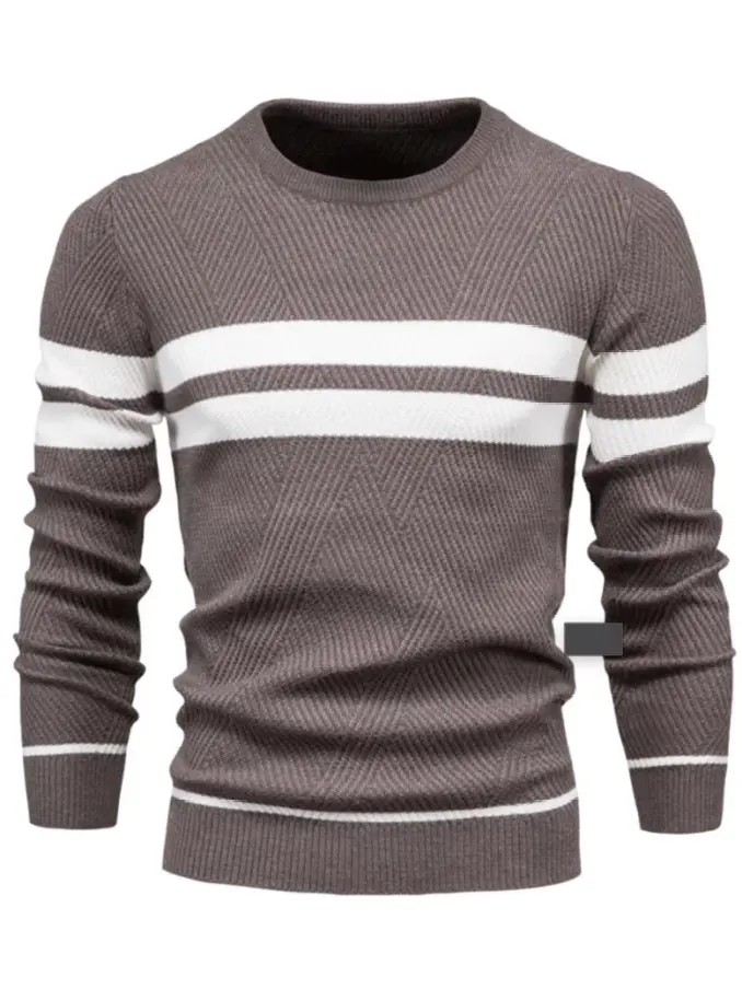 Men Casual Warm Stripe Pullovers Basic Slim Sweater