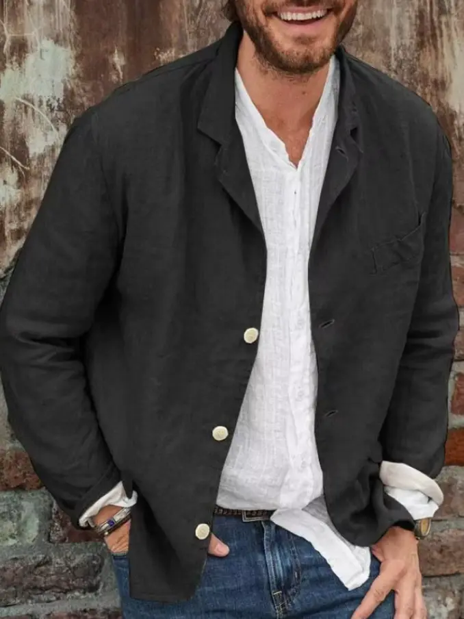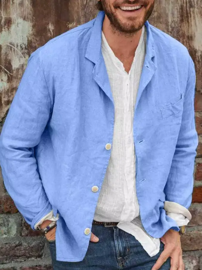 Fashion Loose Single Breasted Long Sleeve Cotton Linen Shirts for Men