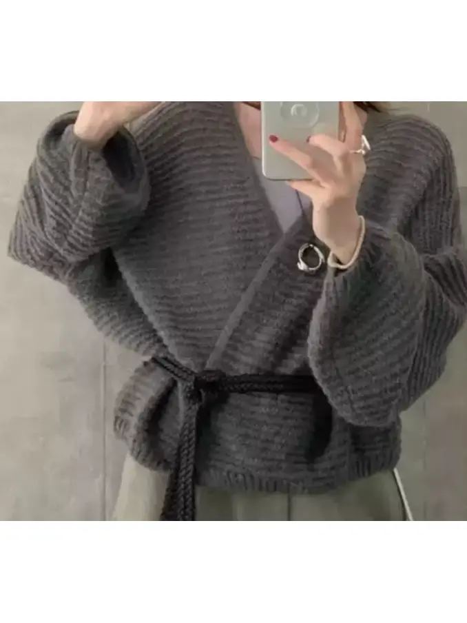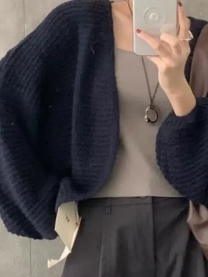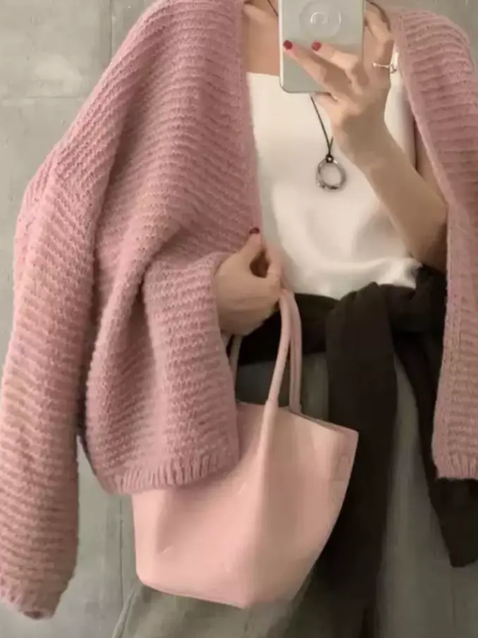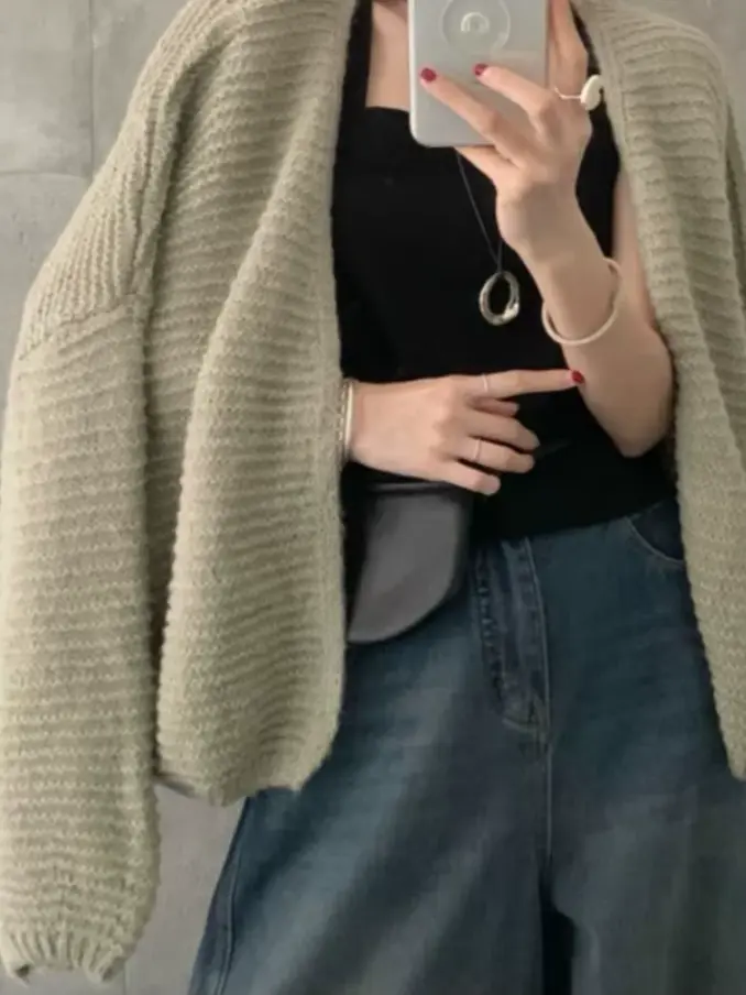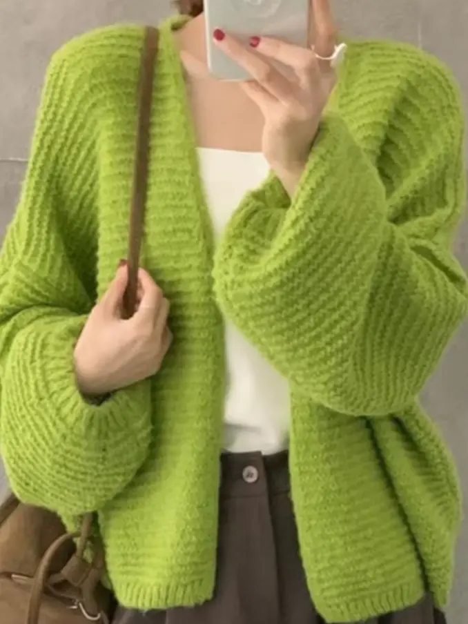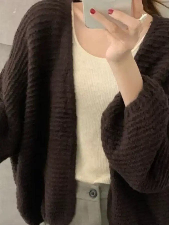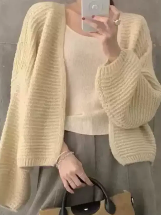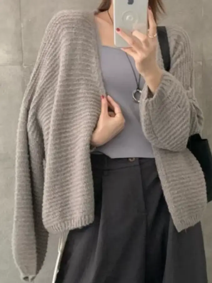 Women's Loose Knitted Open Cardigan - Soft Sweater Outerwear Trendy Autumn Korean Lazy Style Fashionable