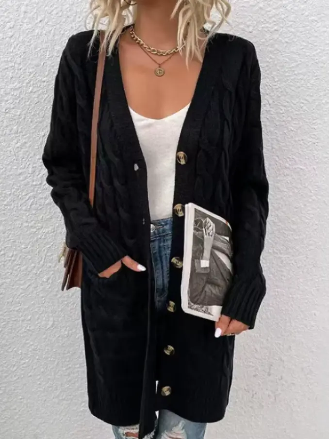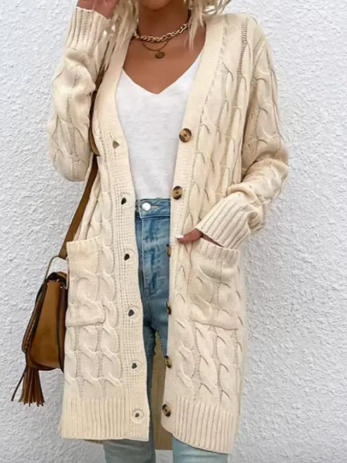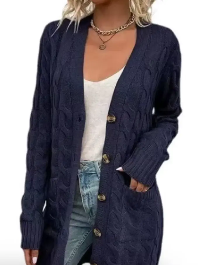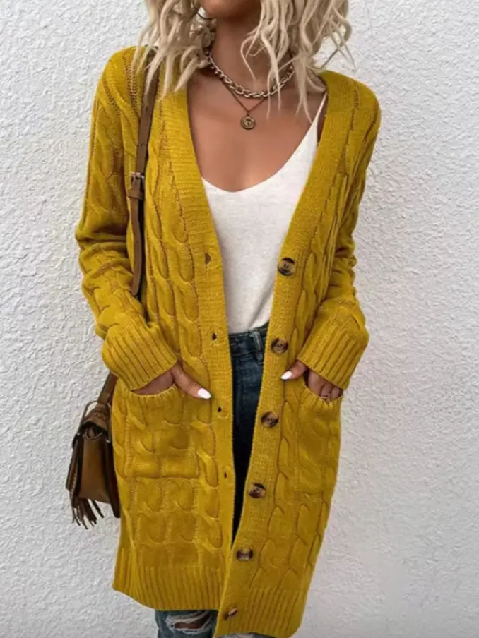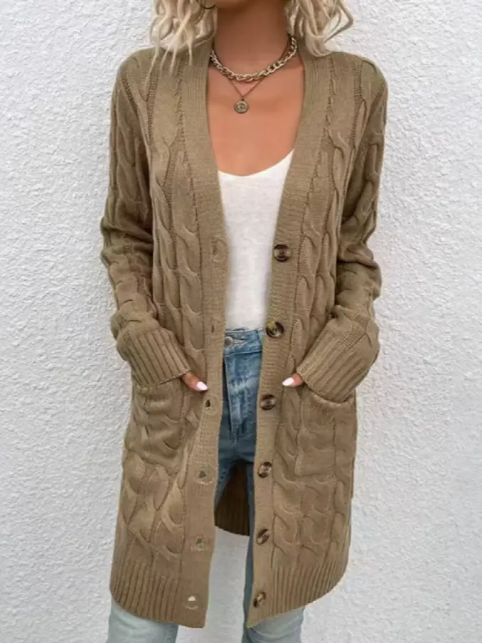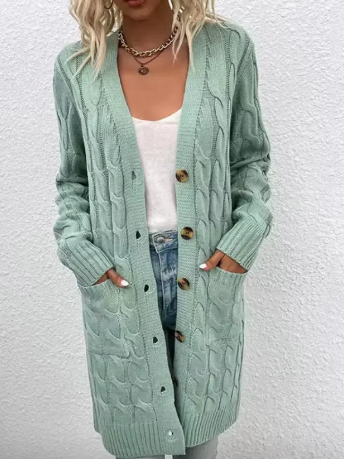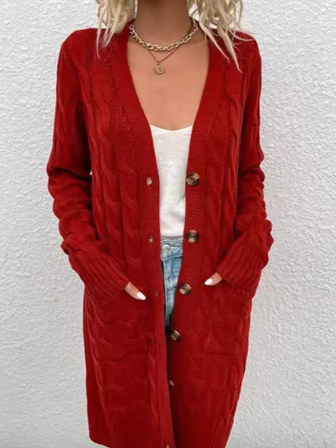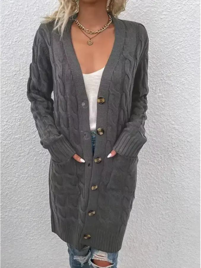 Women's Knitted Sweater for Autumn/Winter - Long Design, Button Cardigan, Stylish Outerwear for Cold Weather