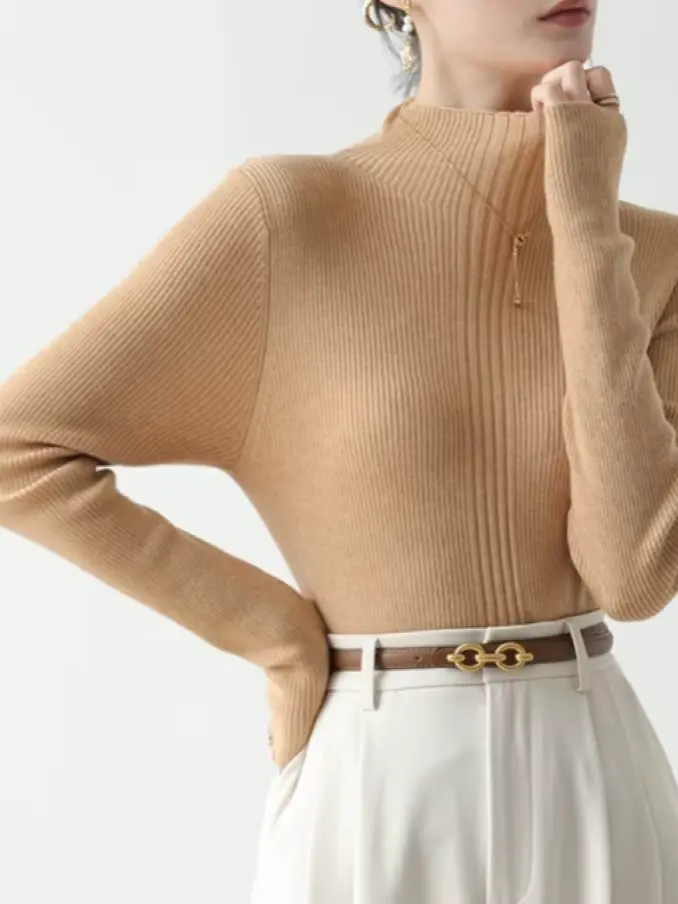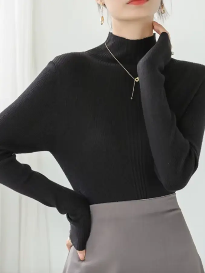 Winter Turtleneck Women Sweater - Vintage Basic Solid, Casual Slim Pullovers Korean Chic Simple Style