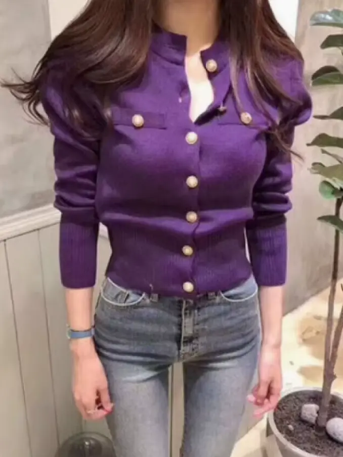 Breasted Slim Chic Ladies Tops Cardigan Sweater