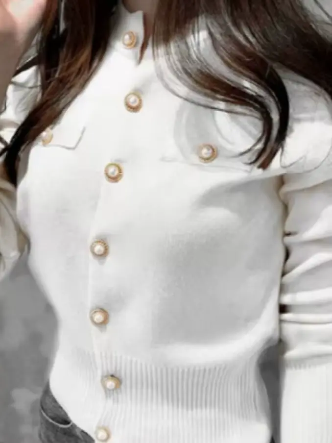 Elegant Long Sleeve Single Breasted Slim Chic Ladies Tops Cardigan Sweater