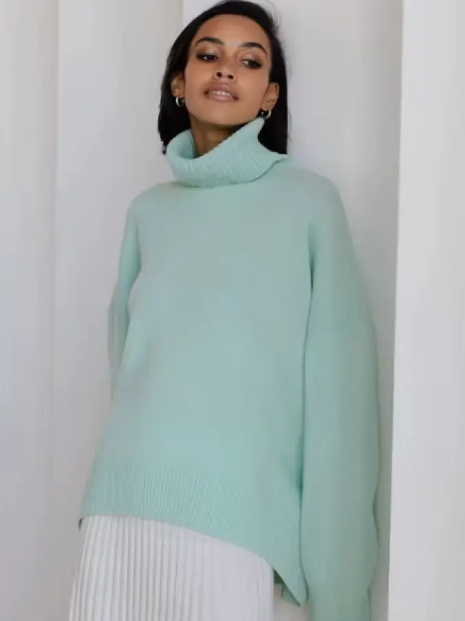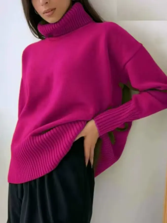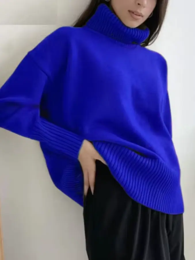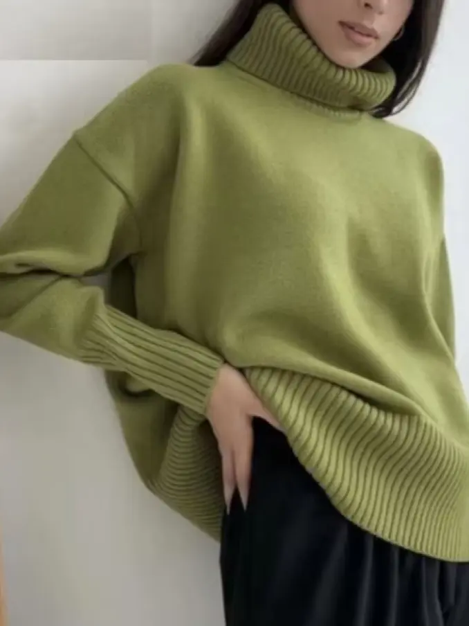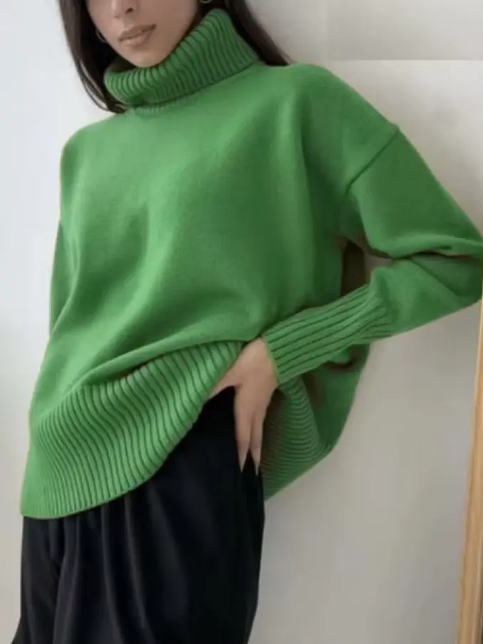 Women Turtleneck Knitted Jumpers Tops Warm Oversized Pullovers Sweater