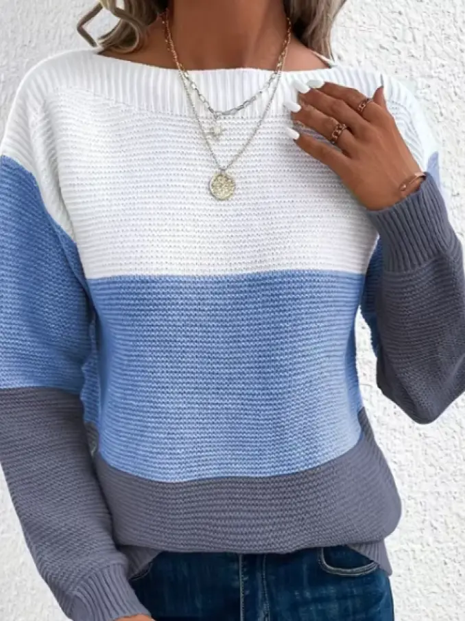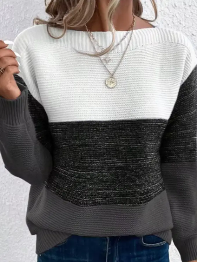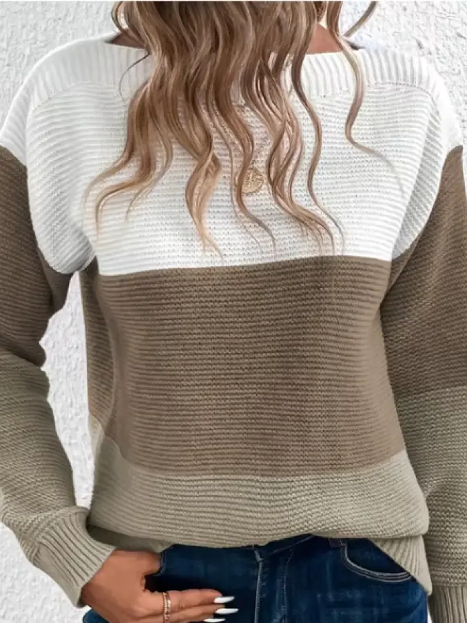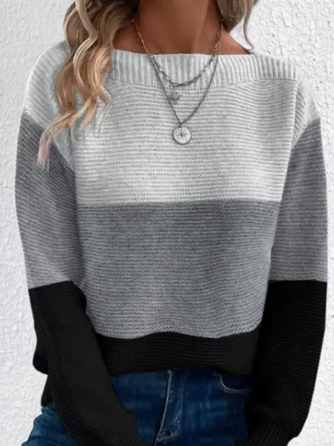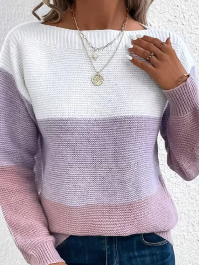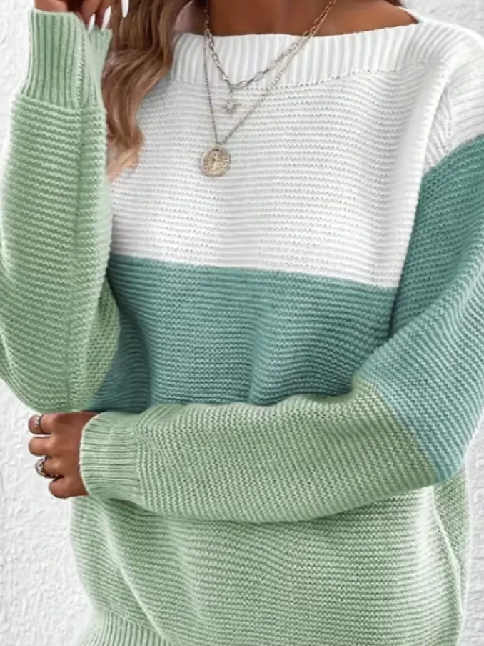 Women's Round Neck Long Sleeve Pullover Tops Knitted Sweater