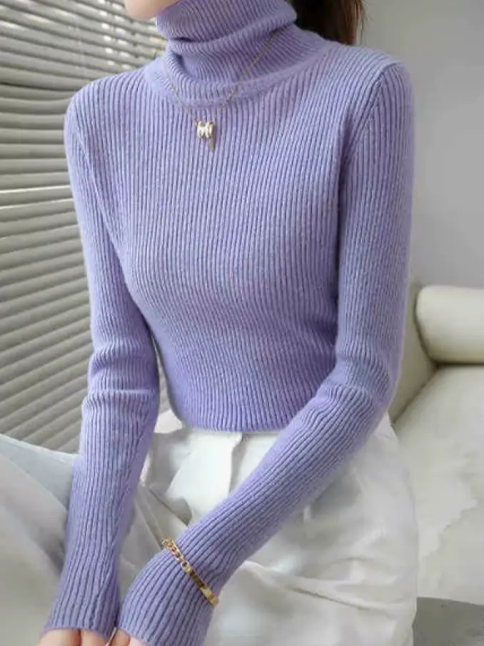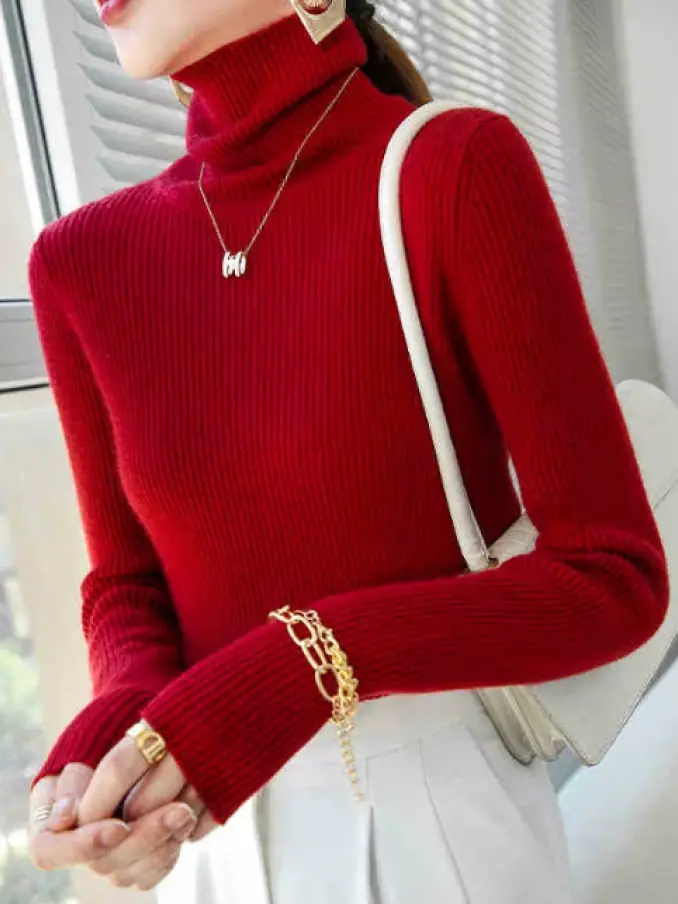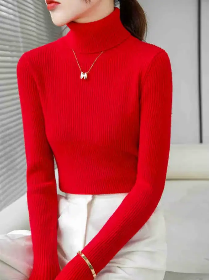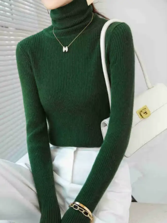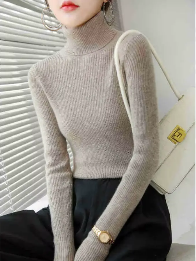 Fashion Warm Turtleneck Slim Long Sleeve Knitted Sweaters for Women