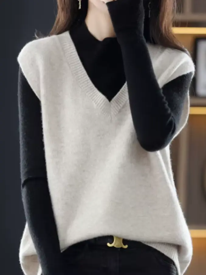 Women V Neck Vest Sleeveless Pullover Casual Knit Sweater