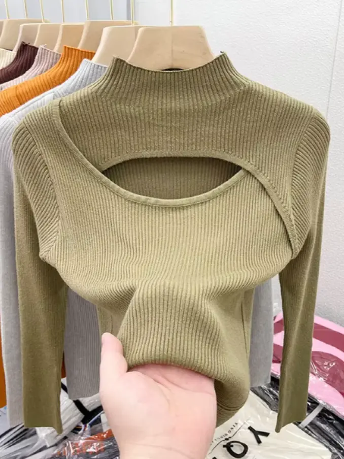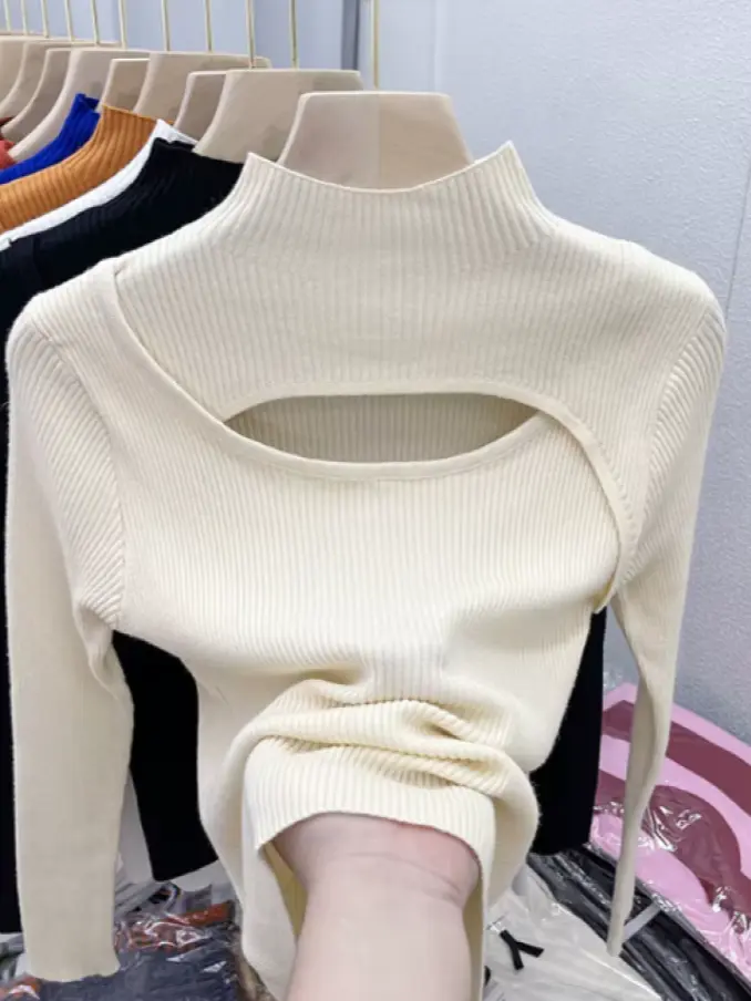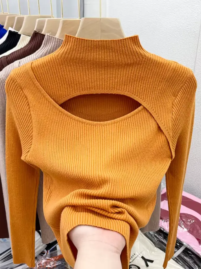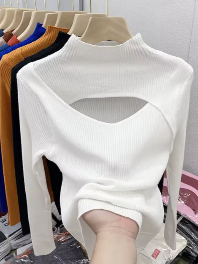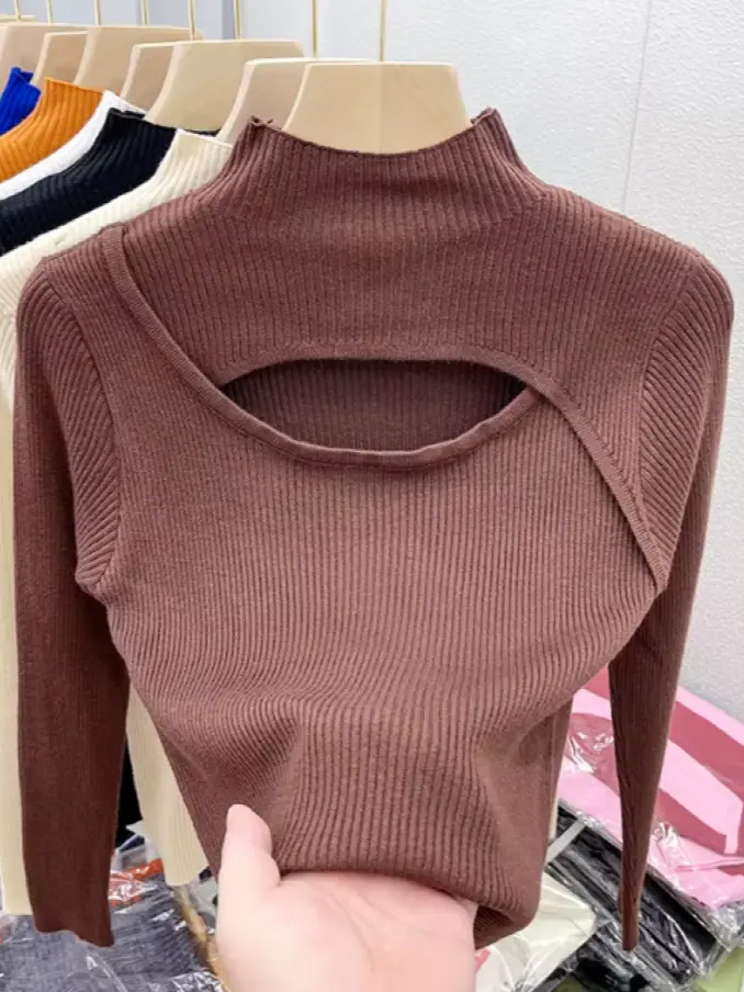 Winter Women Fashion Sexy Hollow Out Slim Knitted Sweater