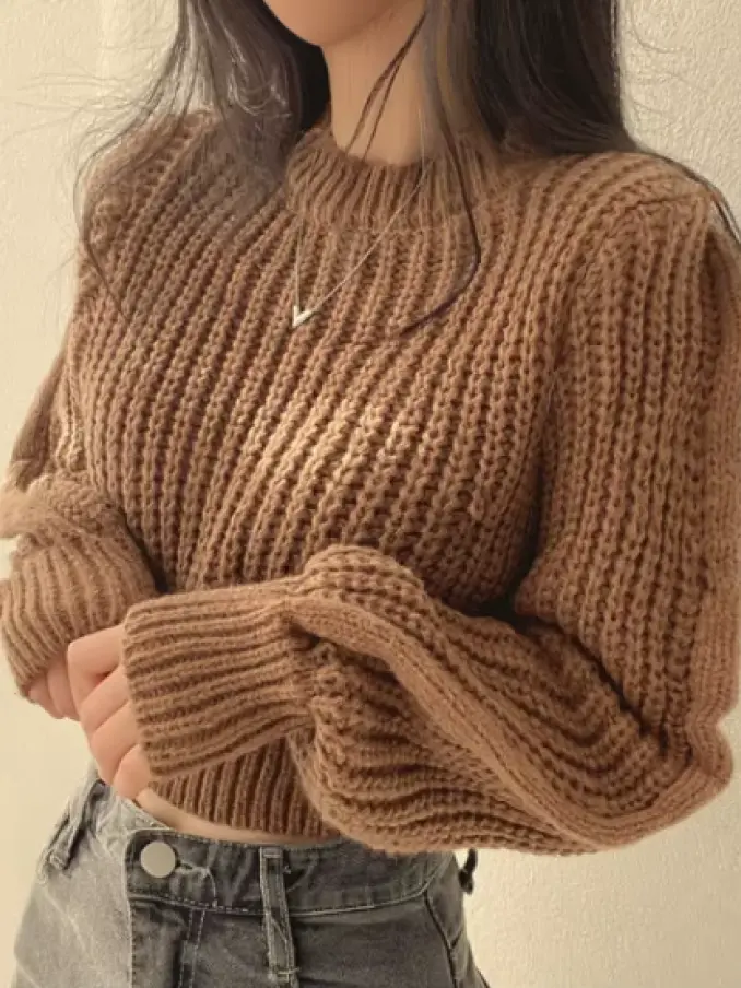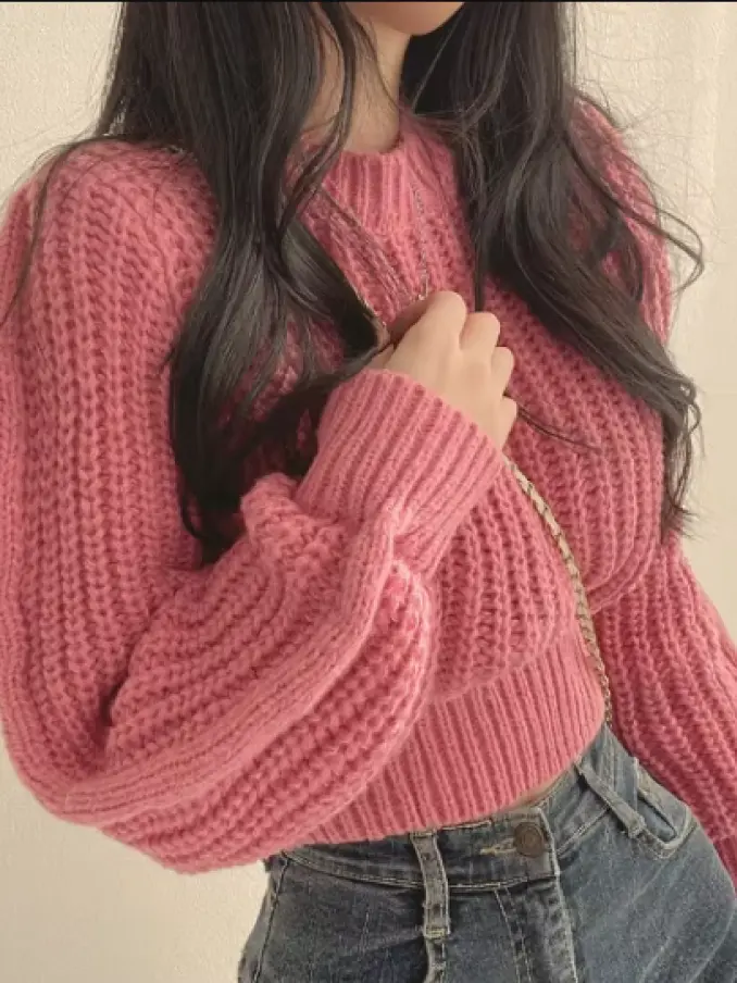 Sweet Casual Round Neck Loose Pullover Long Sleeve Sweater for Women