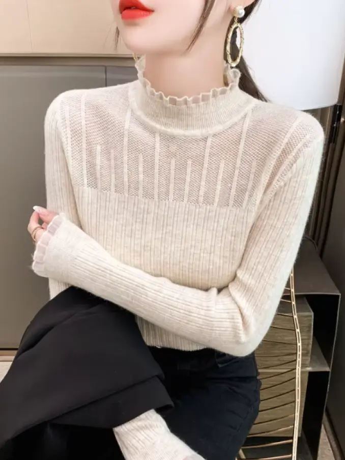 Women Turtleneck Long Sleeve Knitwear Pullover Slim Stretch Knitted Sweater