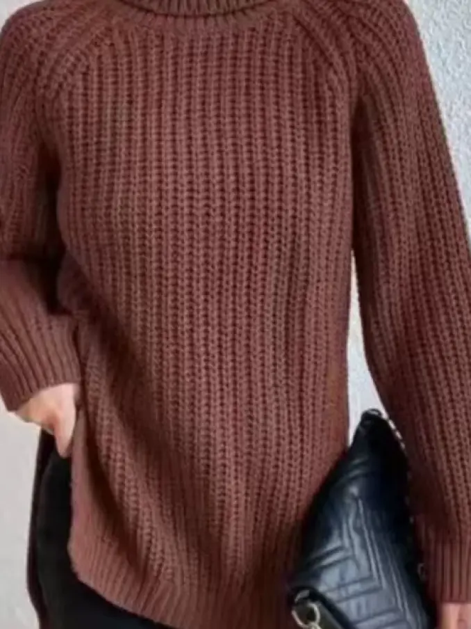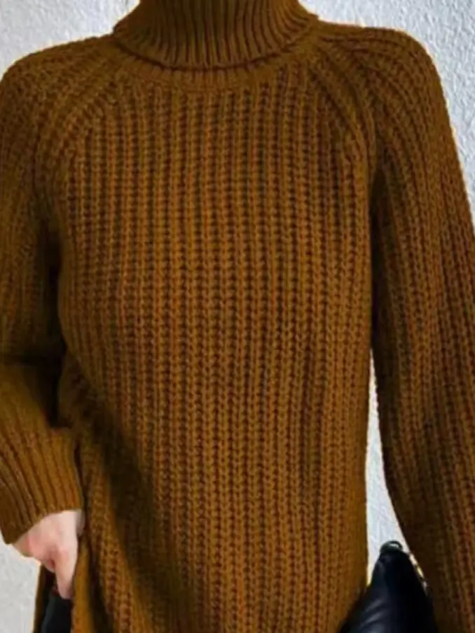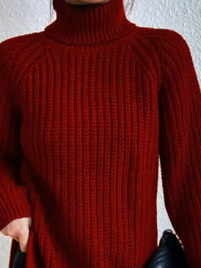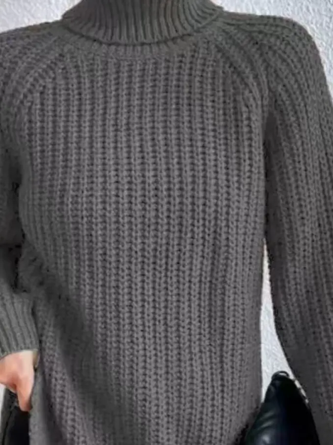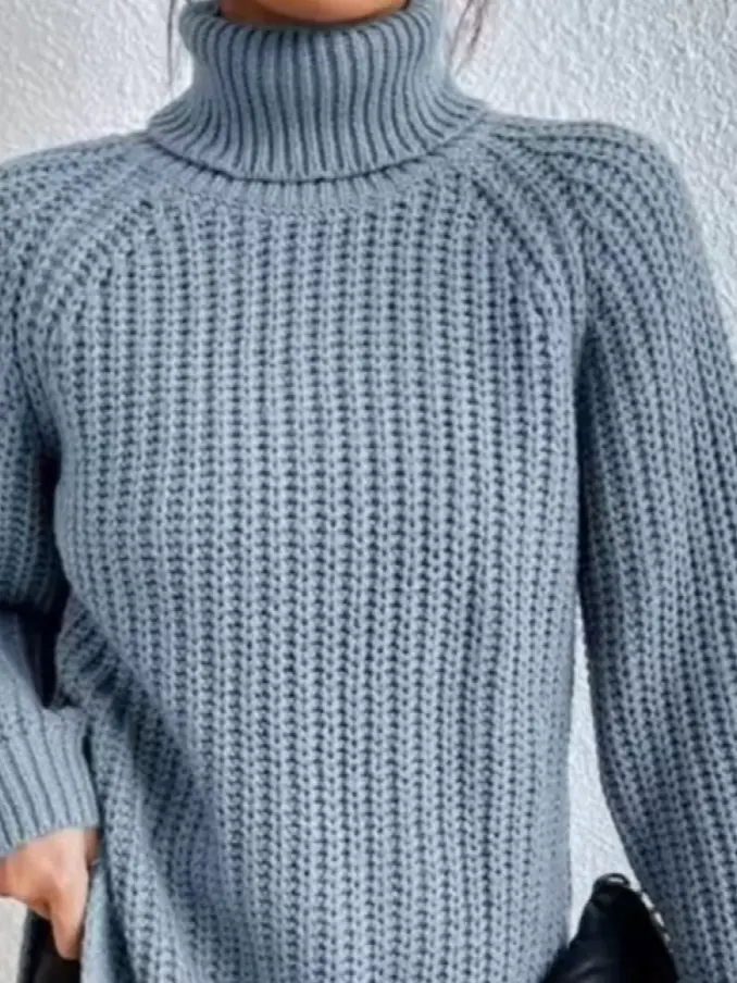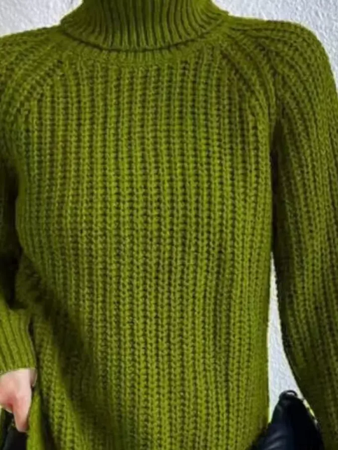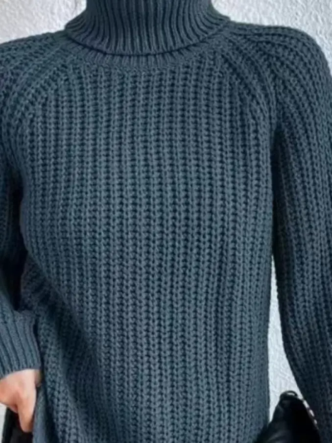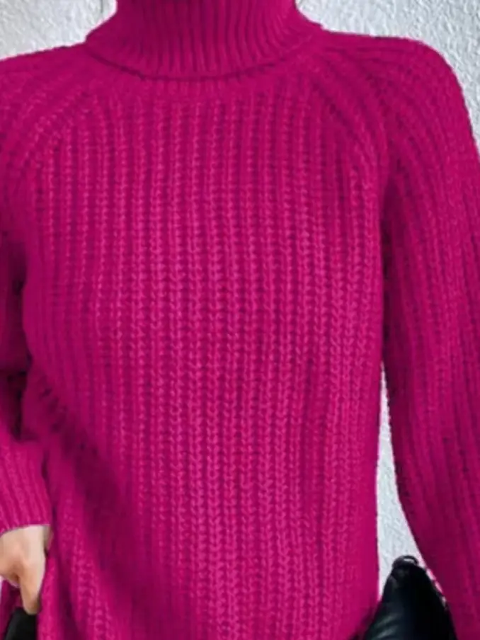 Women Thick Warm Pullovers Long Sleeve Solid Color Knitted Turtleneck Sweater