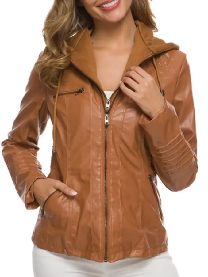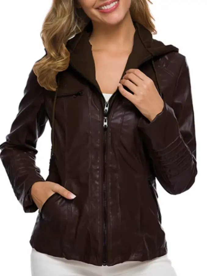 Women's Faux Leather Jacket - Winter Motorcycle Gothic Hoodie PU Coat, Trendy Outerwear with Vintage Style
