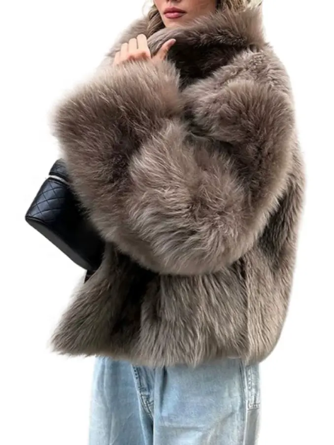 Women's Long Fur Jacket - Plus Size Fur Coat, Elegant Women's Outerwear
