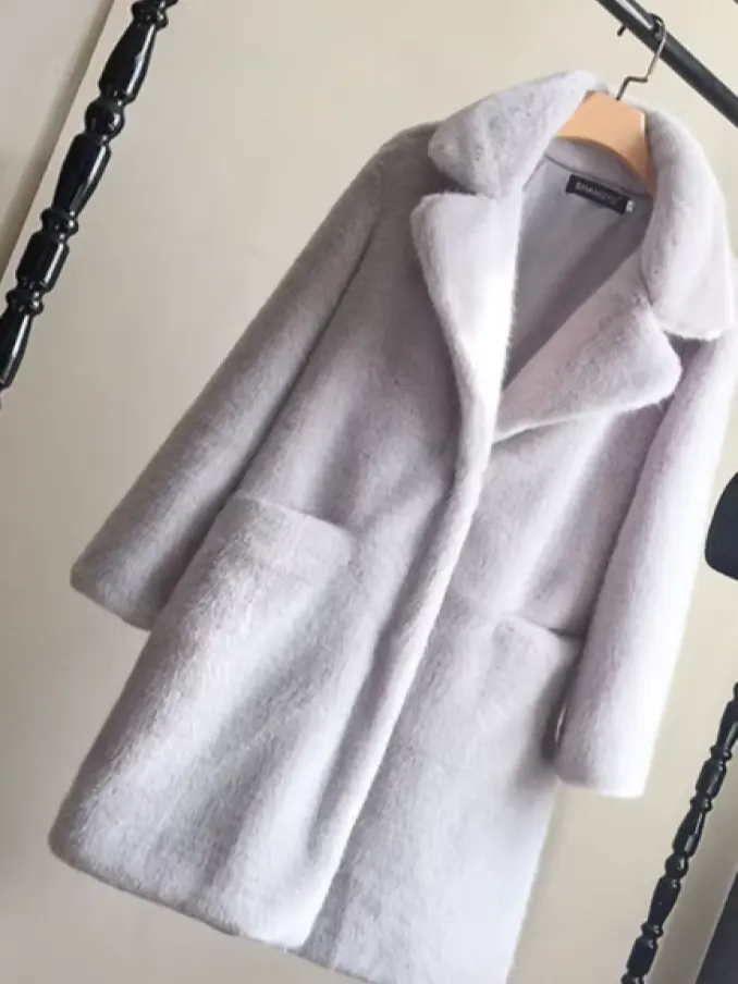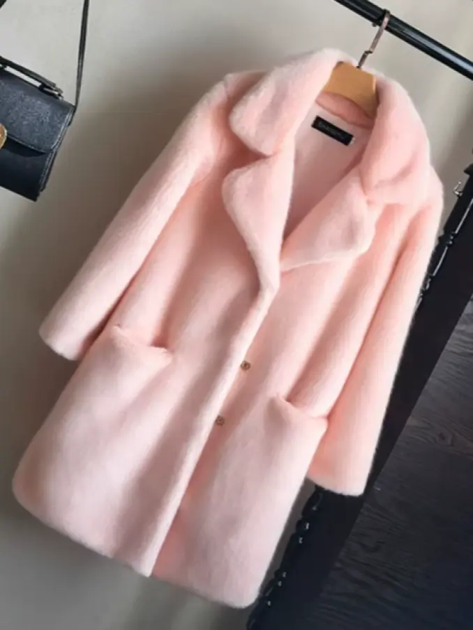 Women's Mid-Length Faux Fur Coat - Elegant Classical Chinese Style Long Sleeve Jacket