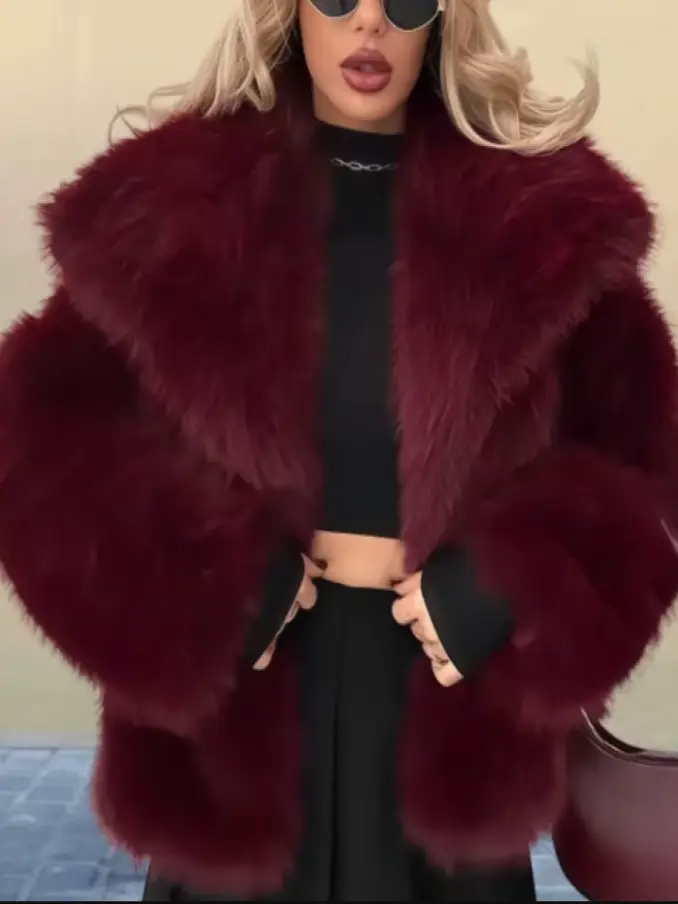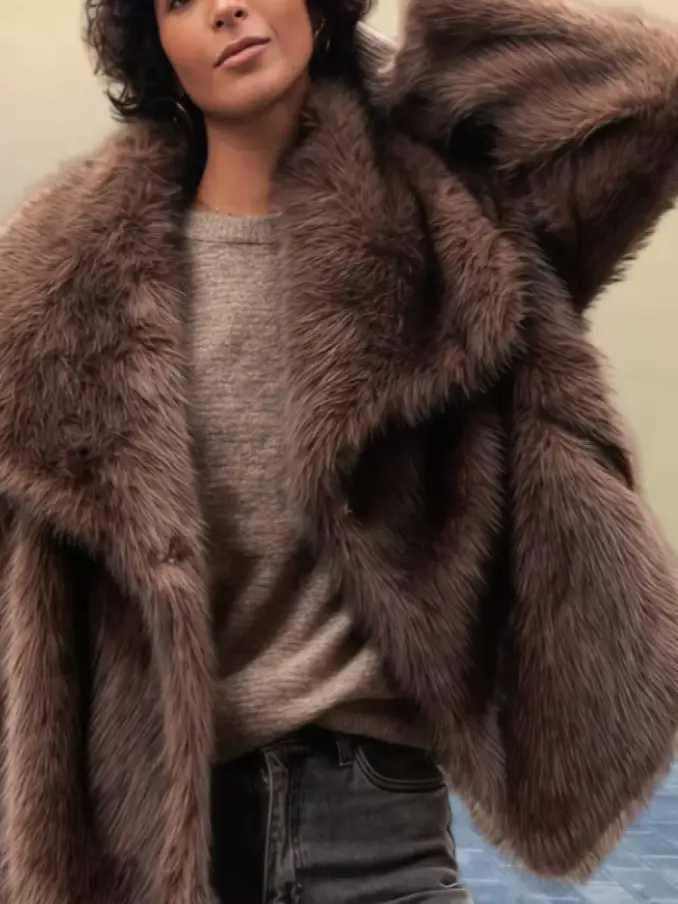 Women's Faux Fur Coat Turn Down Collar Jacket - Solid Streetwear Elegant Thick Warm Loose Style Winter Outerwear