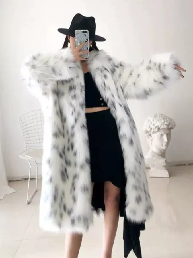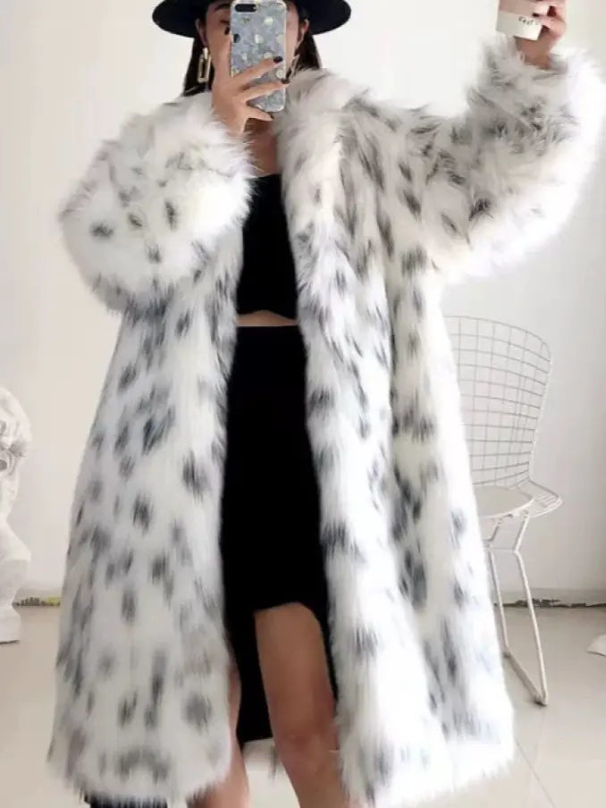 Winter Faux Fur Coat for Women - Long Sleeve Leopard Print Fur Design Fashion Casual Warm Outerwear