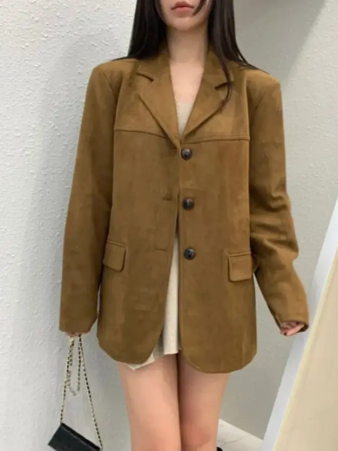 Women Blazer Coat - Korean Retro High Street Chic, Long Sleeve Loose Jacket, Elegant Office Lady Outerwear