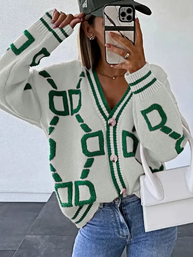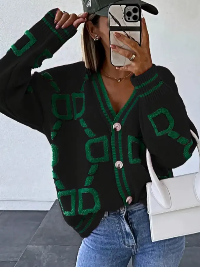 Breasted Ladies Deep V Neck Button Cardigan Knitted