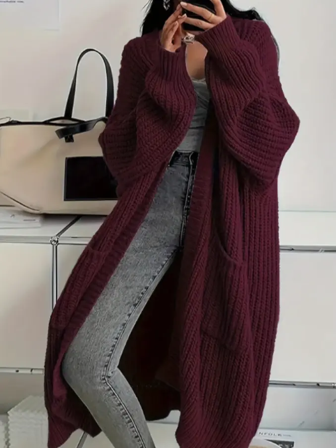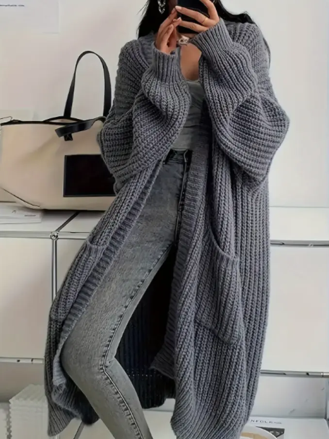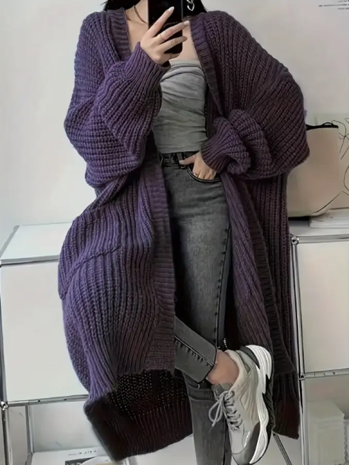 Color Knitted Sweater Cardigan Casual Long Sleeve Drop Shoulder Long Coat Women's Clothing