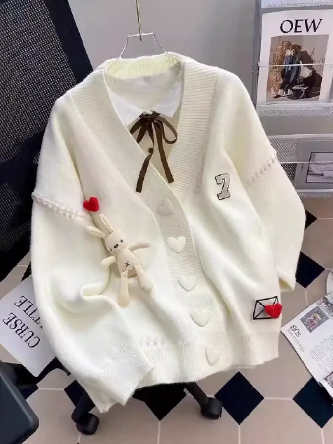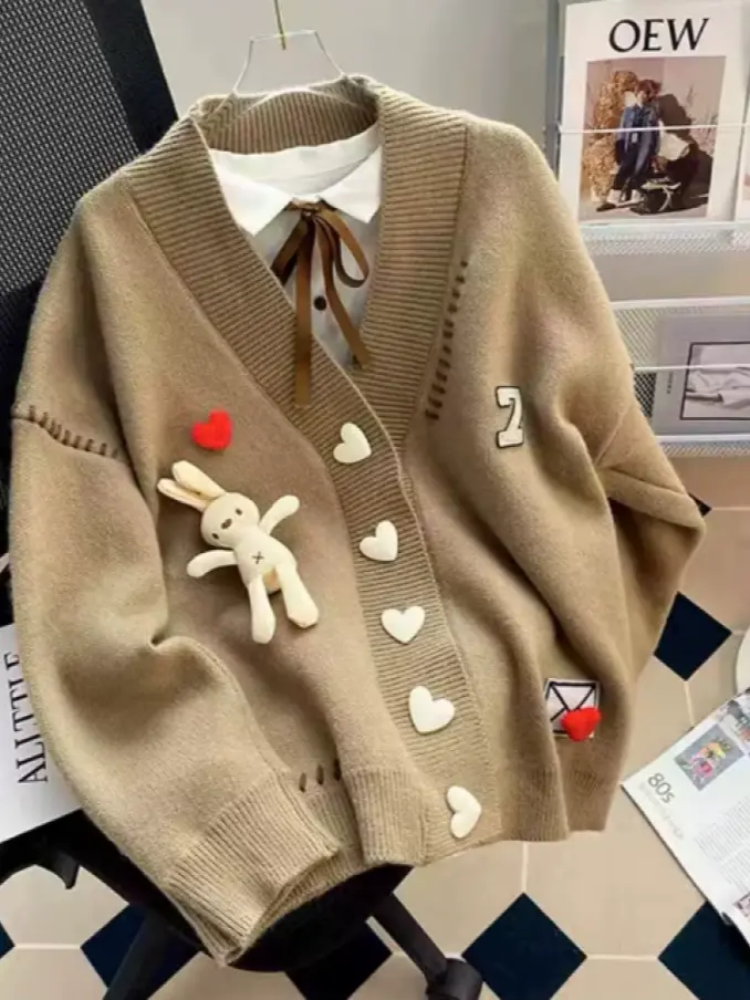 Ladies Casual Coat Cute Embossed Custom Women'S Knitted Cardigan Sweater Korean Knit Loose Jumper for Women